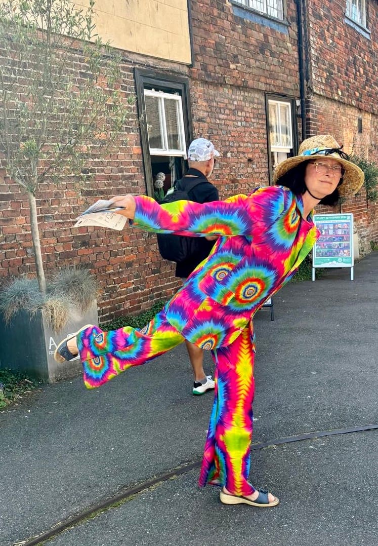 Entry is free and the amazing raffle is just £1 per ticket. Isabel Ryan, dressed in her very arty, colourful suit has been handing out leaflets advertising the exhibition and offering 10% off food and beverages at the Kino, which is always happy to support Rye’s creative events.