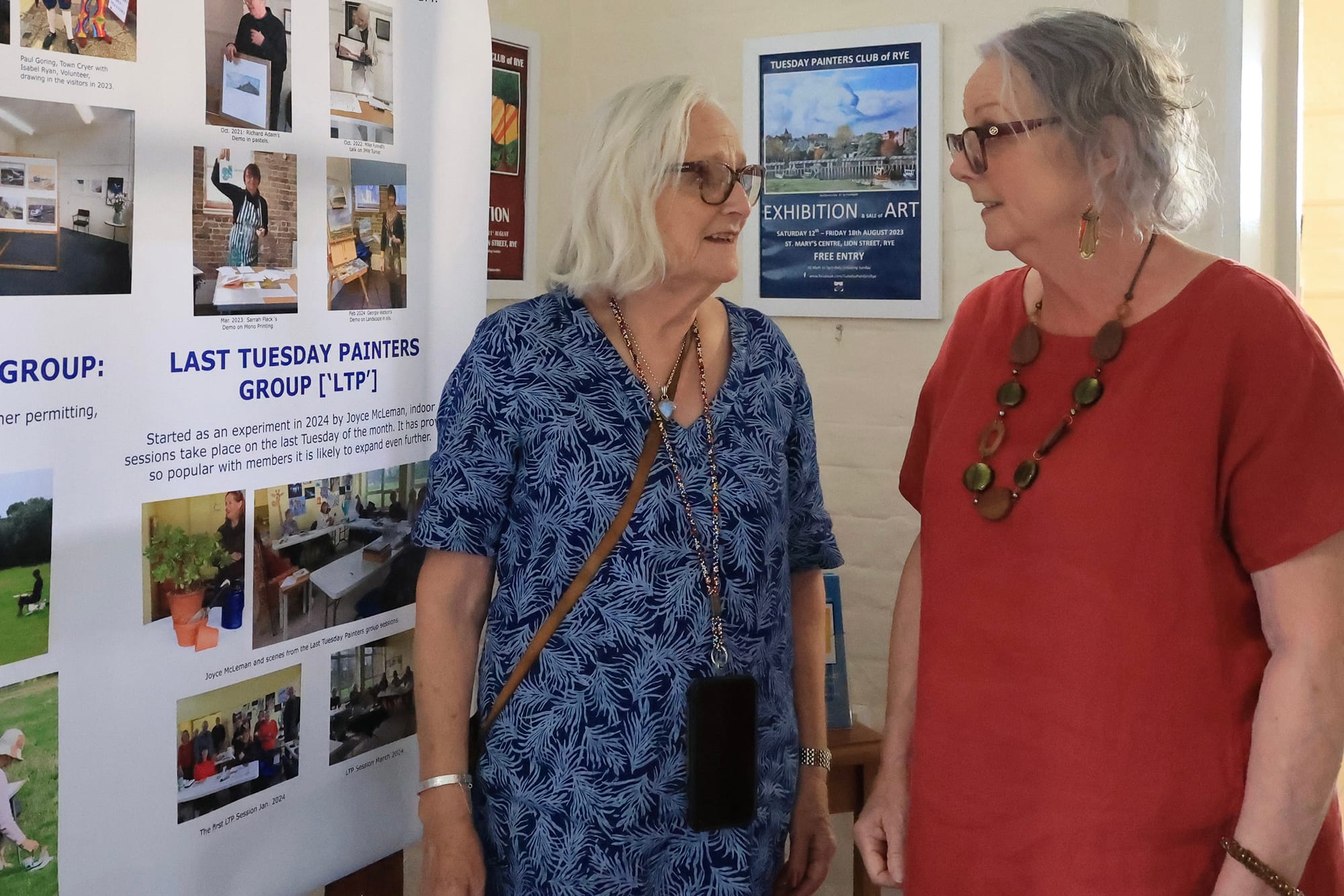 “Tuesday Painters was founded as a club in 1961 and has grown to meet members’ varied needs and preferences. These include workshops, presentations, plein air painting (weather permitting), and the opportunity to meet once a month at a pre-arranged venue to paint / create and socialise. A display board can be seen at the exhibition showing how the club has developed from the small group of friends in Rye who wanted to meet and paint on a Tuesday to the extended membership we have now.