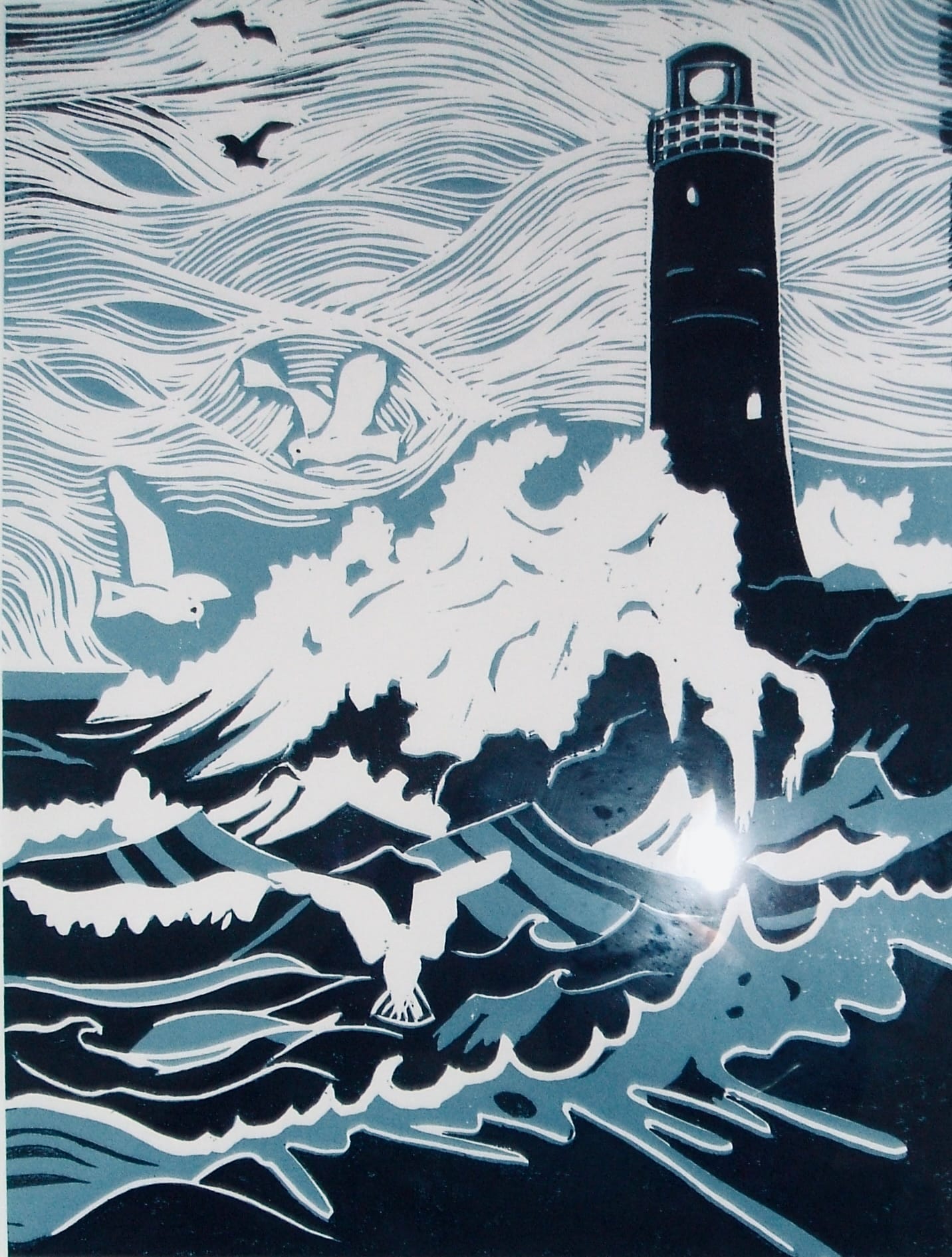 “ArtWrite, our local printing and art supplier in Rye, annually awards a prize to the exhibited piece which has that 'wow factor' factor. This year the winner was Linda Graham for her Stormy Sea lino print. Well done, and well deserved, Linda.