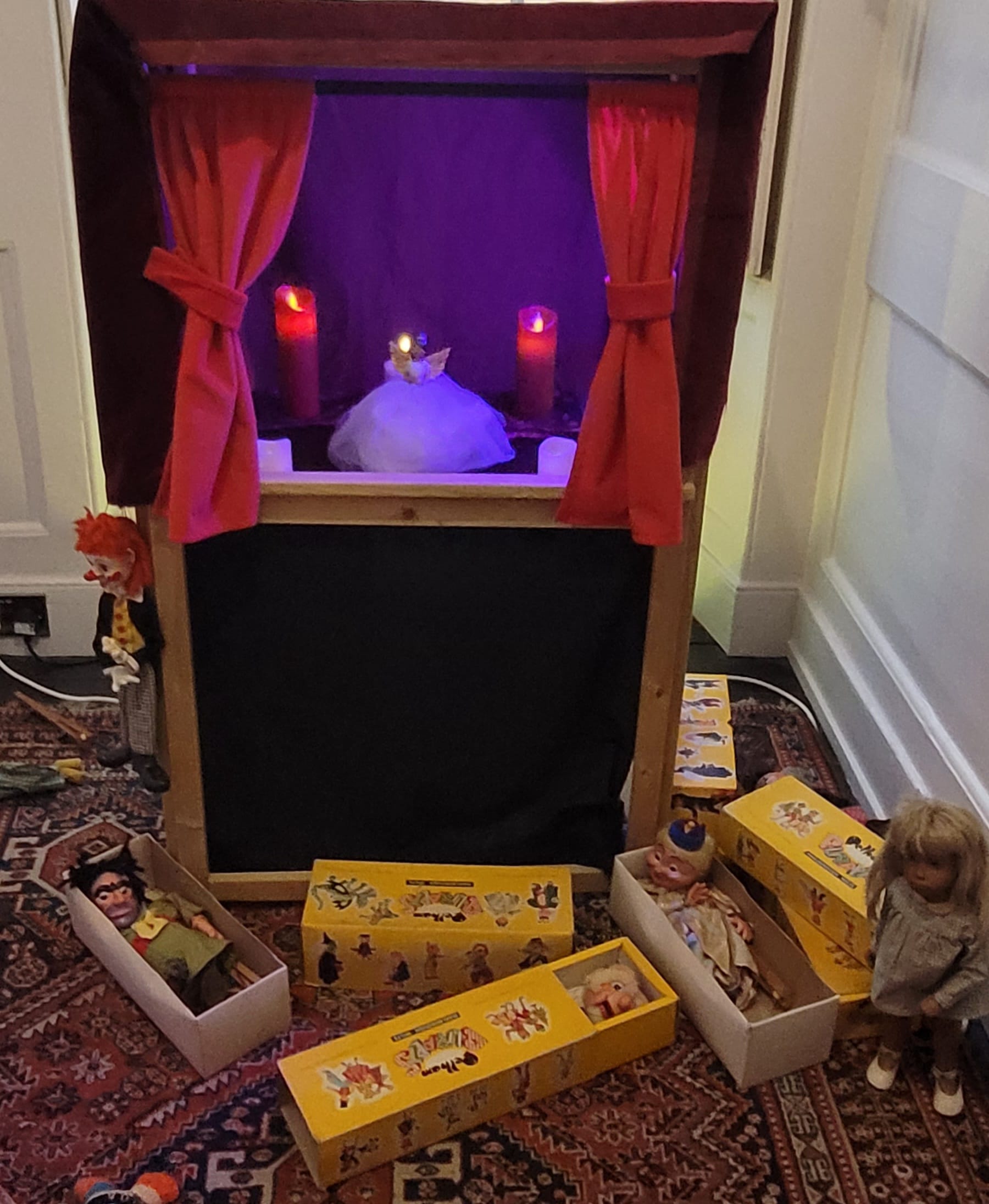 Each room uses a family photograph and recreates it using similar objects or by reflecting the spirit of the photograph. A nativity scene is on the windowsill on the stairs, almost exactly replicating the family one seen in a photo nearby. The small dressing room upstairs is used as a playroom with a puppet theatre similar to the one seen in the photograph accompanying it. There are dolls and toys that many will recognise and will enjoy seeing again.