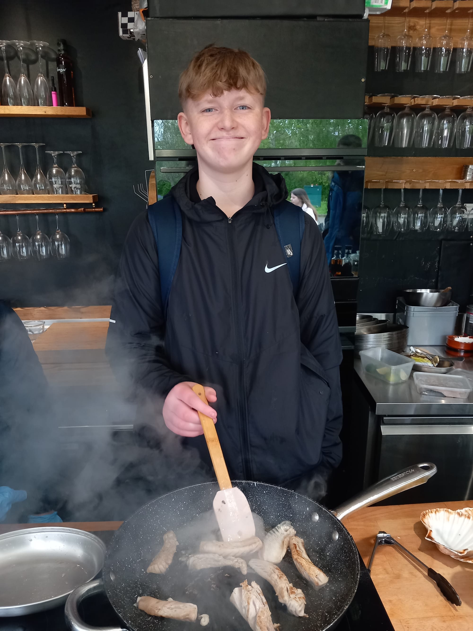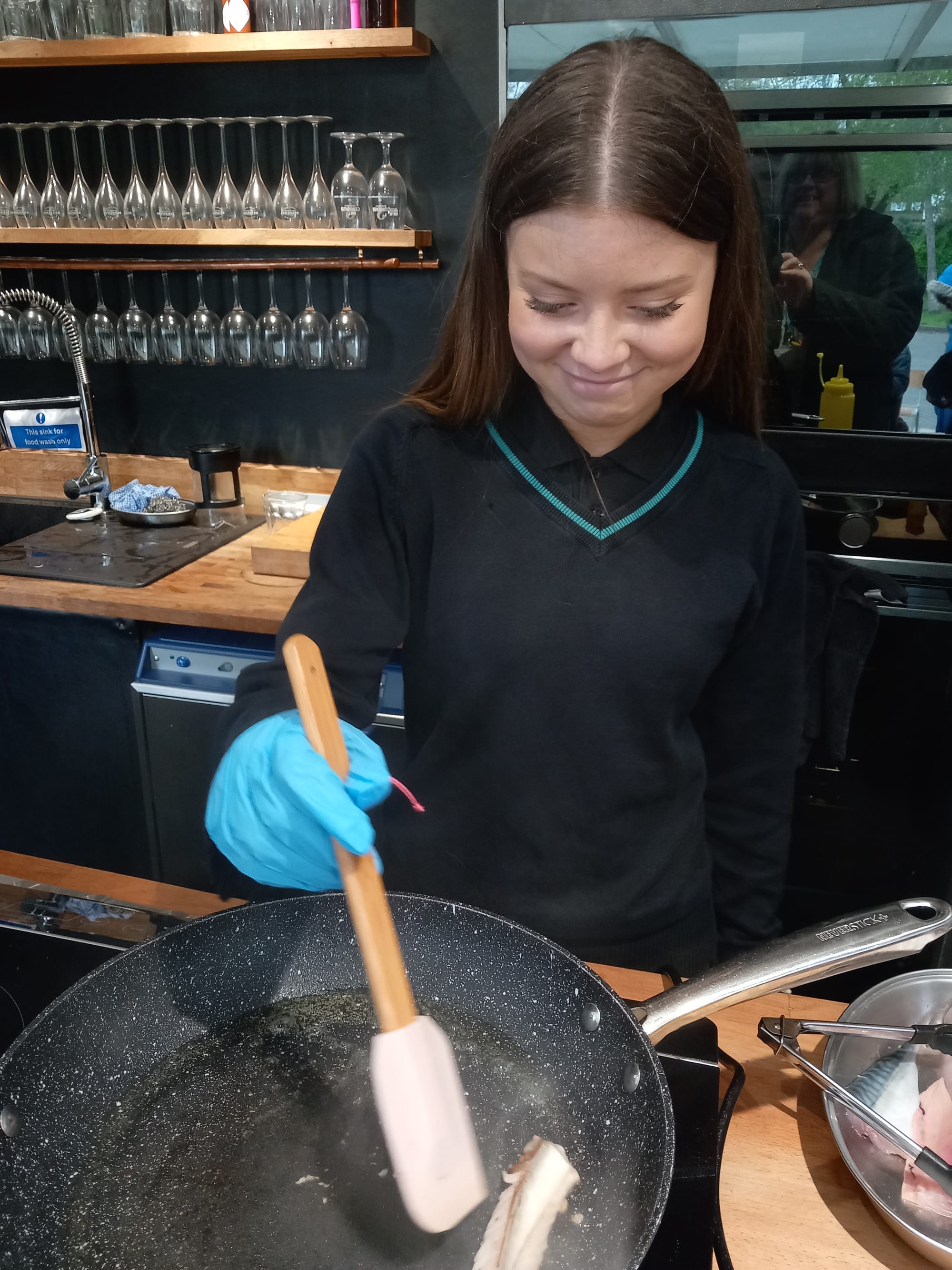 After some reluctance, much gutting and filleting followed with the students having the unique experience of preparing a freshly caught fish and then, under Louise’s direction, cooking and eating it. By the end, any reservations were cast aside and, as far as I could see, everyone enjoyed the whole experience, as well as eating the end product.