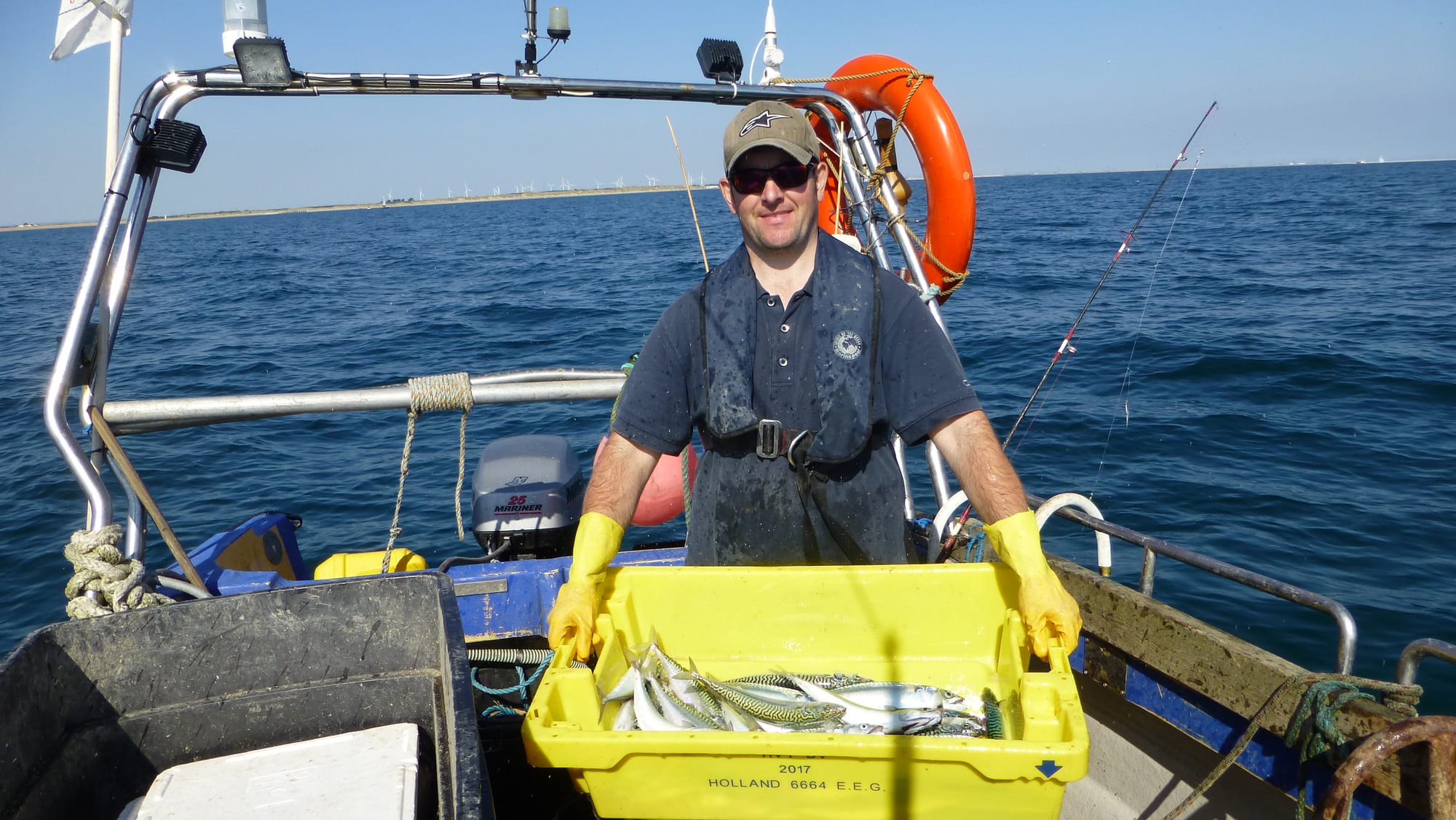 I’m mostly retired. I mostly do scaley stuff, with fish such as bass. My two sons George and Jasper do most of the work now. George does the fishing and filleting. He takes the boat out of Rye Harbour along the East Sussex/Kent coastline. Jasper, a former boat builder, sells the catch and runs a Farmers’ Market stall, five or six every week. These are our main retail outlets. Locations include Wye, Penshurst, Bexley, Groombridge, Chislehurst and Crowborough.