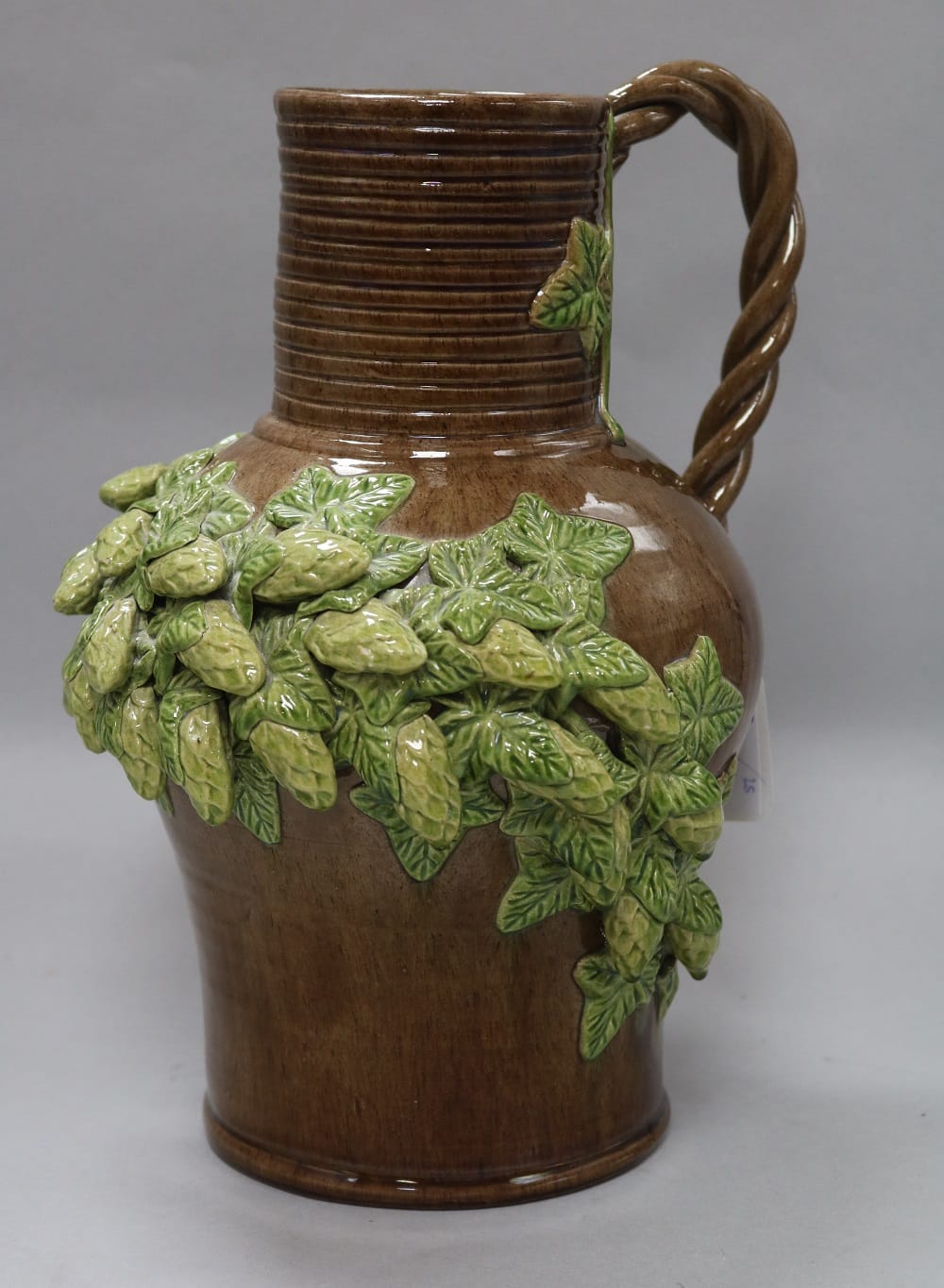 While William had experimented with different clays, Frederick was more interested in using different glazes and applied decoration and so began producing pots adorned with acorns, hops flowers and leaves with brown or green glazes, known as hop-ware or rustic ware.