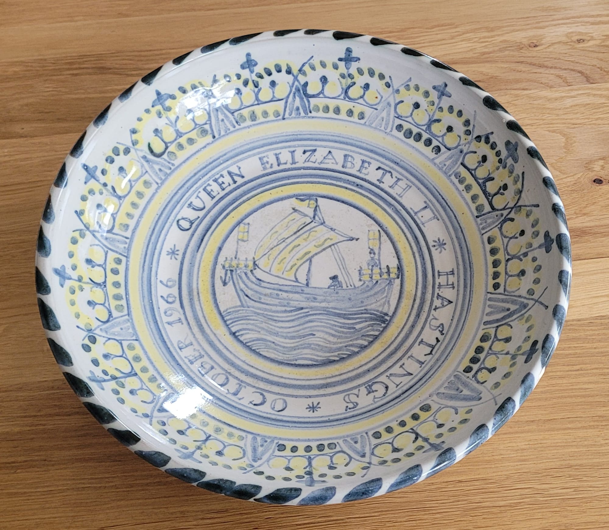 The Rye Pottery Queen Elizabeth II 900th anniversary of the Battle of Hastings commemorative plate of 1966