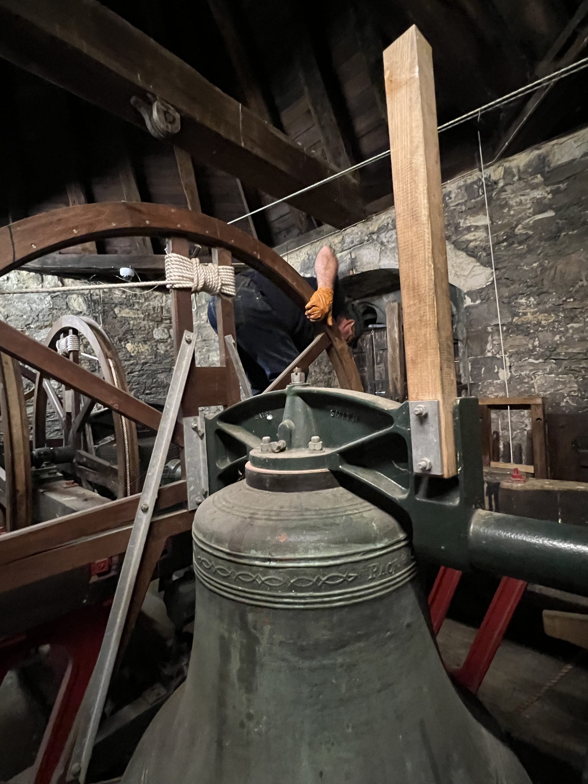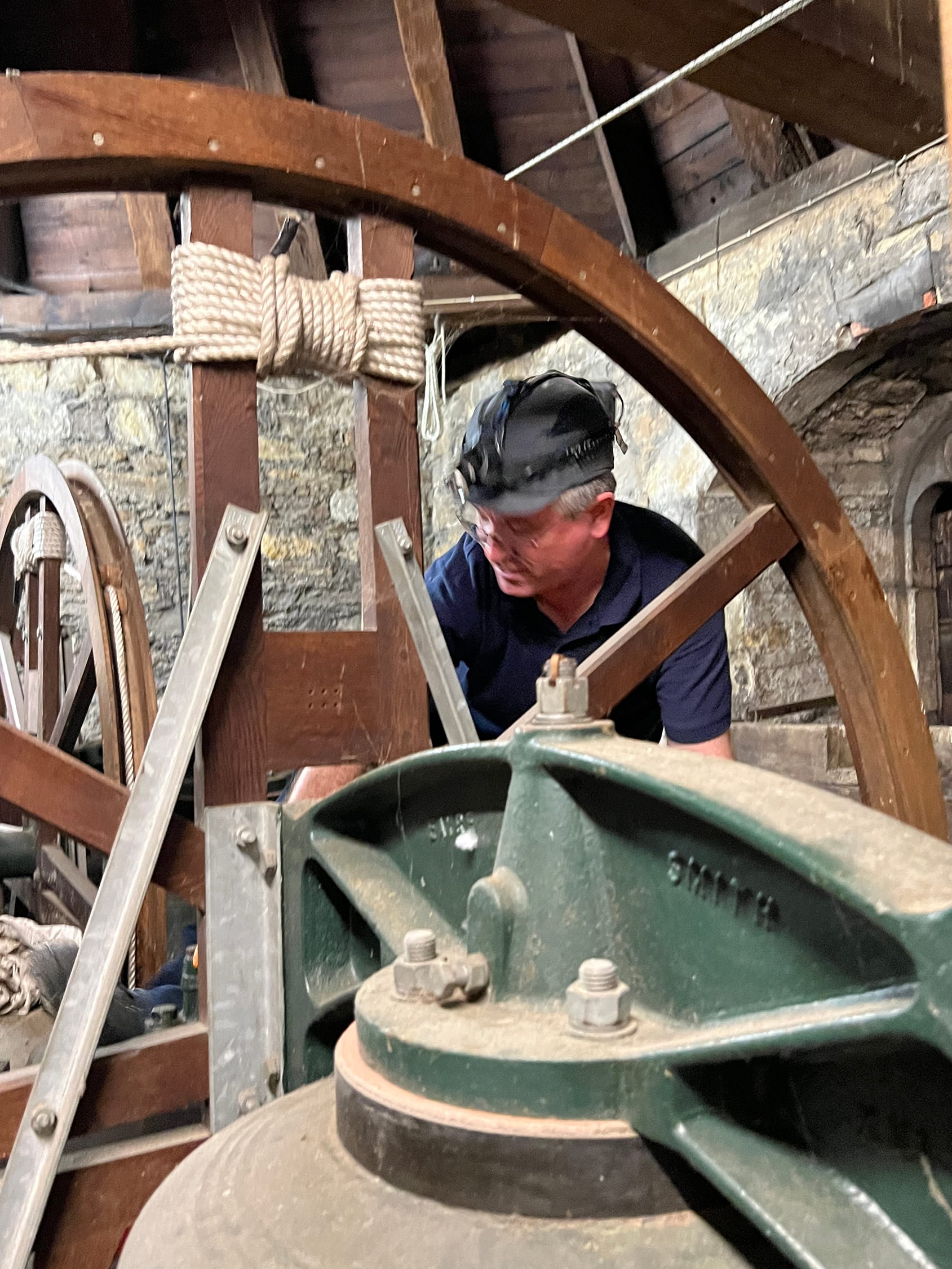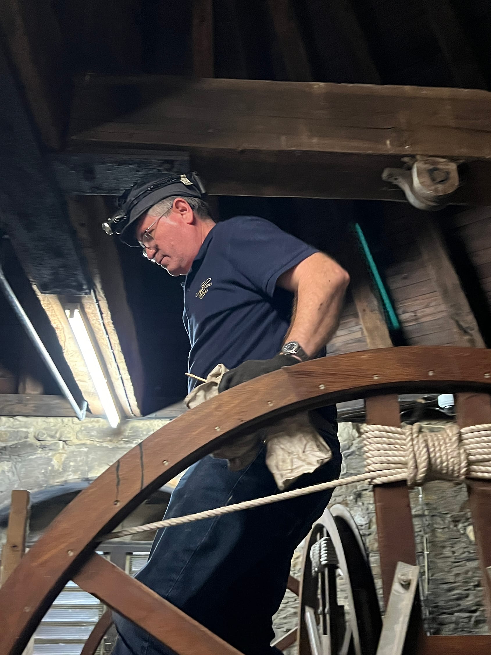 As he was working he chatted to the Rector, of Rye St Mary’s, Revd Paul White: “The clock is thought to date from the 1500s but I think it is earlier than that. What is so remarkable is that it is still doing what it was intended to do all those years ago and it’s here. I find that working on these ancient clocks is such an amazing connection to history. I find myself imagining all those people who heard this clock strike all through the centuries. It is quite humbling.