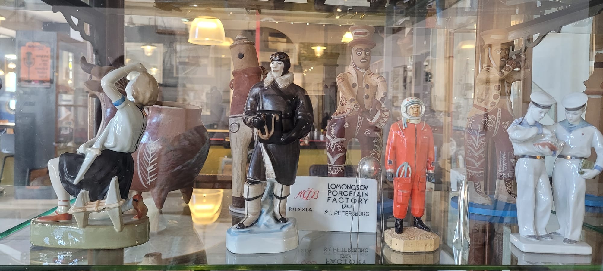 The space certainly is cool with an industrial aesthetic, containing the Reel bar and café, an open area and mezzanine for the gallery and exhibitions, and dotted with cabinets displaying collections of Soviet era toys and figures, Russian art on the walls and vintage cinema equipment. The evening of our visit, the café was buzzing with people meeting up before the film, Eiffel (the story of the man behind the building of the Eiffel tower).