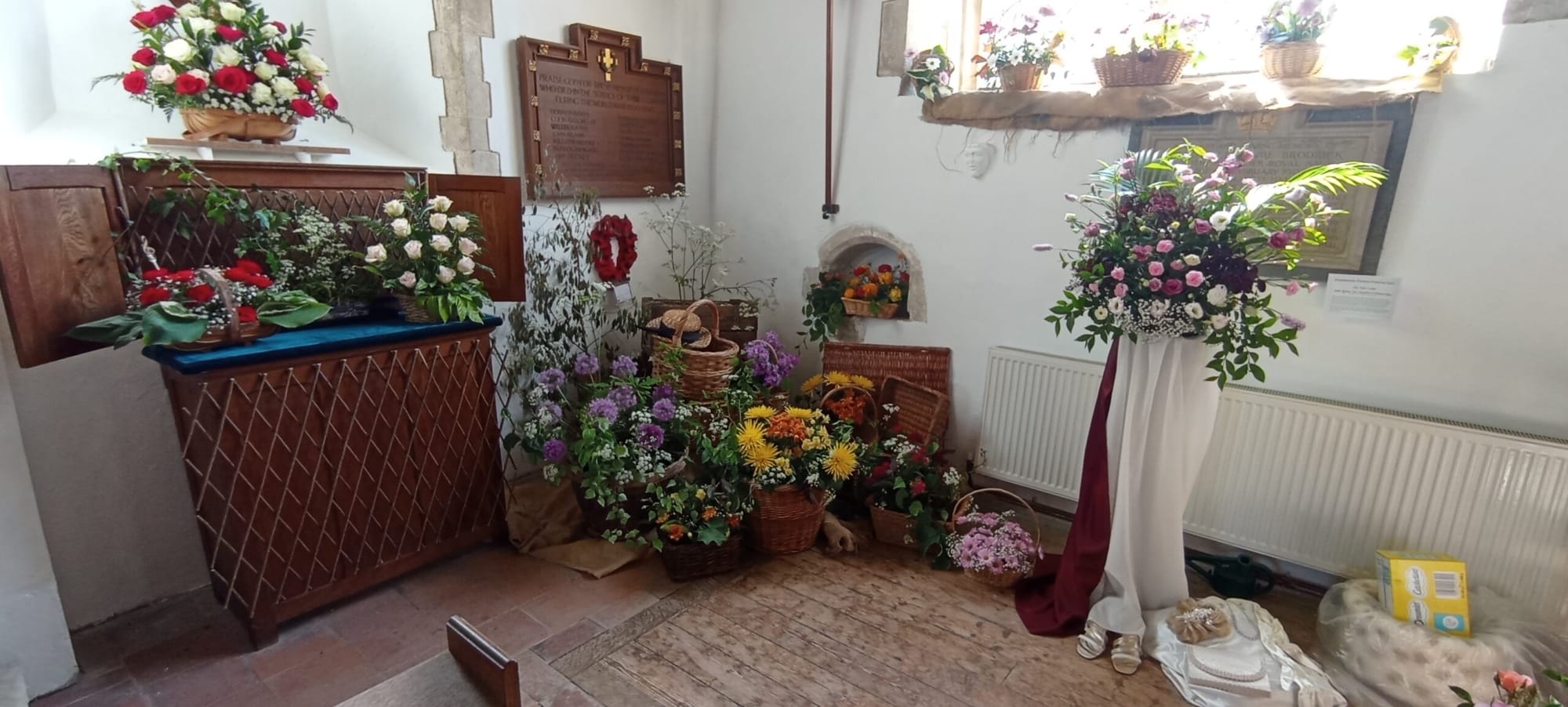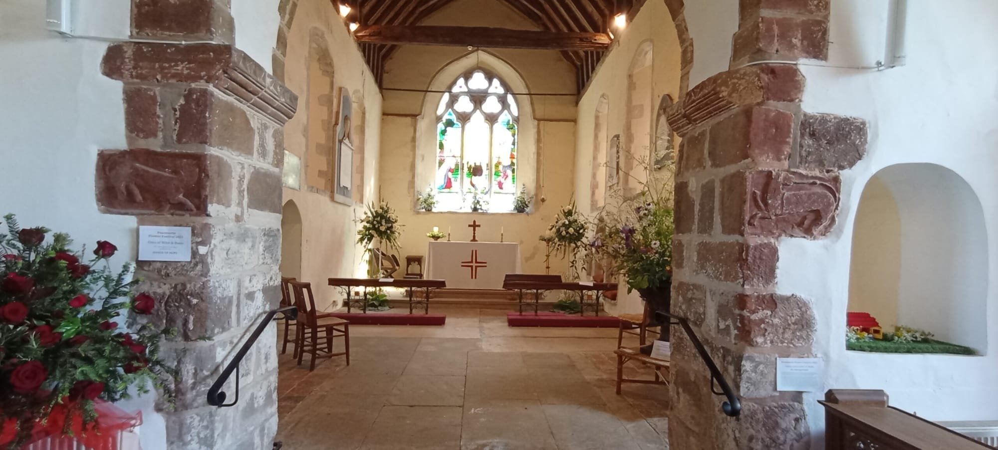 Bright blue sky and sunshine, a very good start to the day and just the right ingredients for a successful weekend at Peasmarsh Flower Festival which ran from Friday to Sunday last. The church of St Peter and St Paul is not only a spectacular building in a delightful setting but a church with a regular and sizeable congregation who share a passion for keeping it maintained and alive. What better setting for the festival and on arrival the first thing which struck me was how traditional the scene was, the church taking centre stage flanked by a plant stall, bunting and adjacent to the car park, ladies serving a superb selection of home made cakes and refreshments.