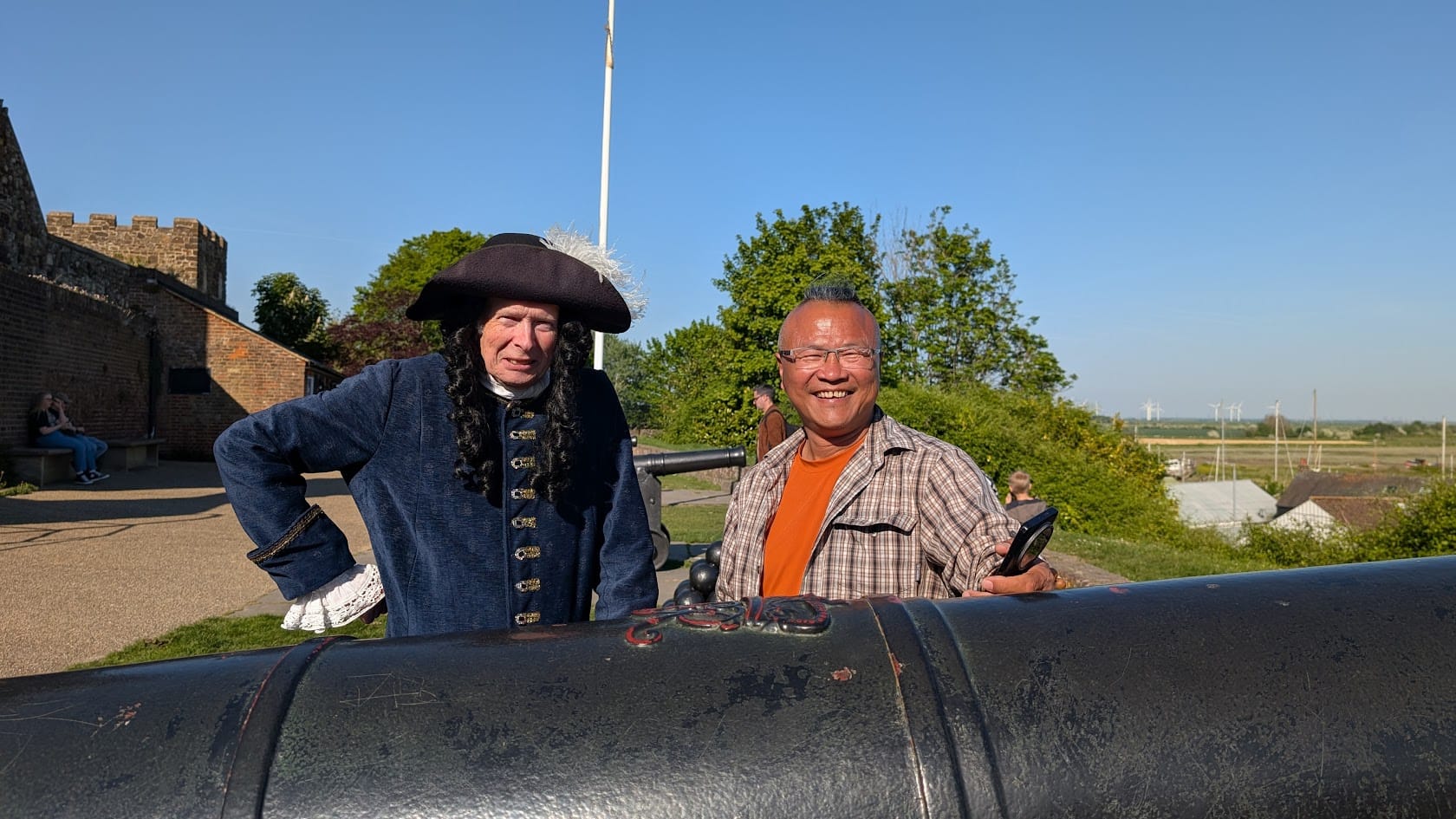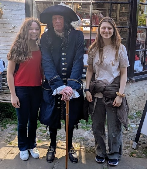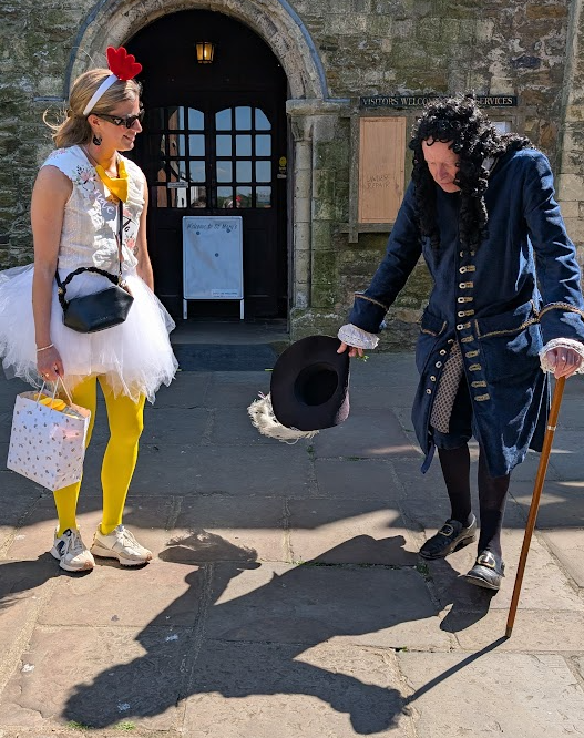 This figure was clad in a dark blue velvet suit with breeches and a tricorn hat, from which sprouted a long white feather. As we drew closer, the figure doffed his chapeau - and from this action, the conversation began.