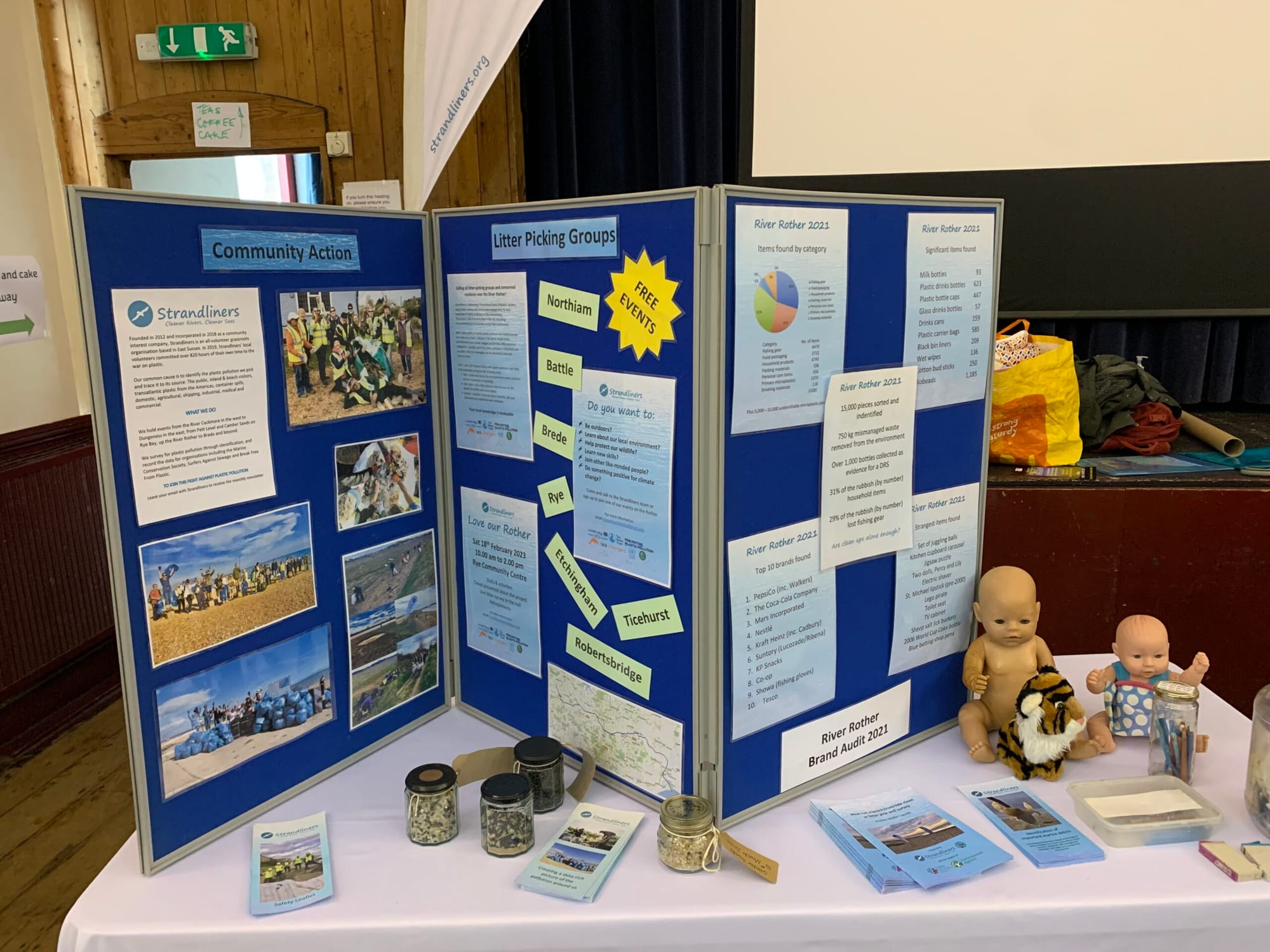 The Love Our Rother event was held as part of Strandliners’ Preventing Plastic Pollution project in the Rother catchment. Over 100 people from the local community came together to meet the various organisations with their displays and activities, hear the speakers, watch short films, and discover many different ways to show our environment some love. The event included a live litter survey, with rubbish collected from the banks of the River Rother, in which the audience was invited to take part. A key speaker was Gonzalo Alvarez, Chair of the United Nations Association, Climate and Oceans, who spoke of the climate impact of plastic pollution. Strandliners is now an Ocean Ambassador for the UK, and Andy Dinsdale accepted a certificate on their behalf.