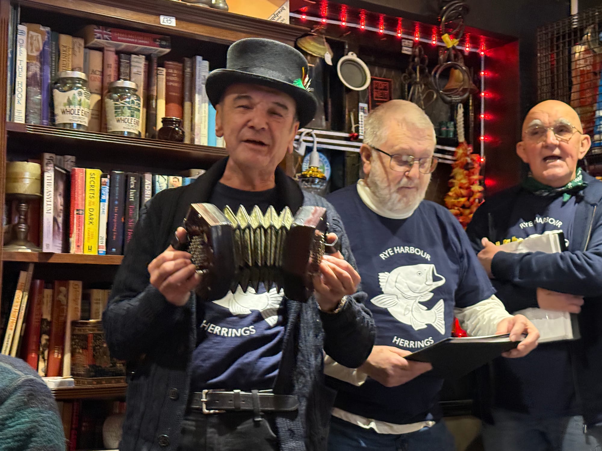 Sunday was also a day for shanties, this time at the Mermaid Inn and the punters again loved the Rye Harbour Herrings. People who were dining in the hotel’s restaurant came out between courses to join in.
