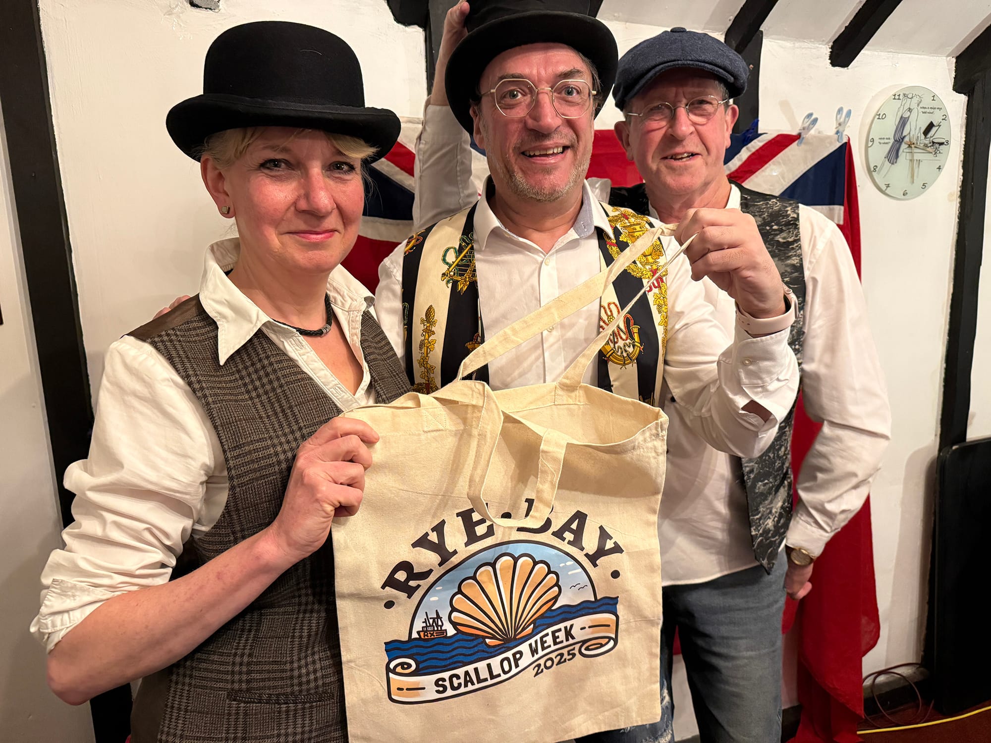 Later in the day Rye Bay Crew were singing energetically at the Queen’s Head. This event was accompanied by a beautifully prepared meal, starting with scallops, created by Sara. It was a sell-out.