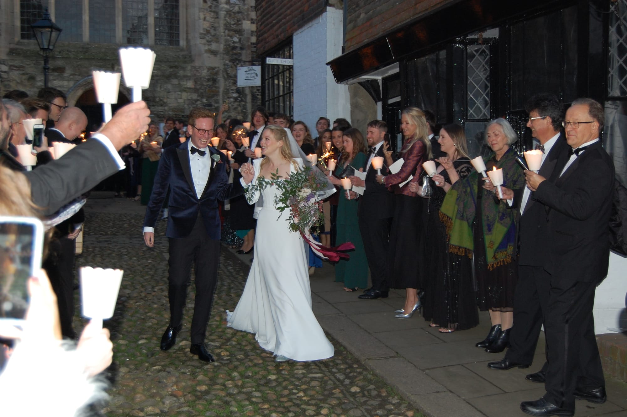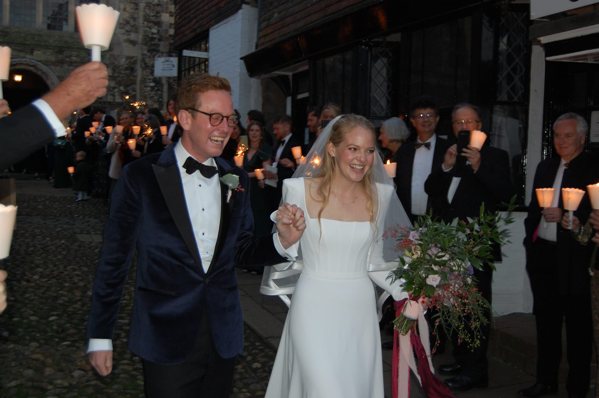 The wedding of Rhodri Mason and Eleanor Neilson was celebrated in style last Saturday at St Mary the Virgin, Rye. The ceremony was conducted by the bride's uncle, the Reverend Edward Mason, chaplain to the Queen. After the service and the signing of the register, the couple processed from the church through the upper part of Lion Street, which was lined by the guests each carrying a lighted candle.