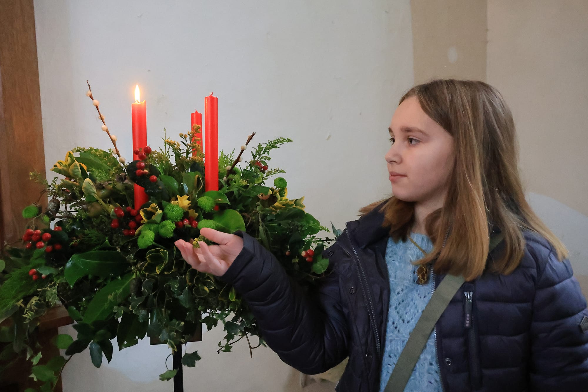 “Thank you to Rev Paul for an uplifting first Advent and dedication service; thank you Poppy for lighting the first advent candle. Martin Bruce for playing the organ, Lesley Moore for Handel’s Let The Bright Seraphim with trumpet part by her husband Richard Moore and Kt Bruce for photography and video; and finally to Ruth and Graham Hurley for helping me with the flowers.”
