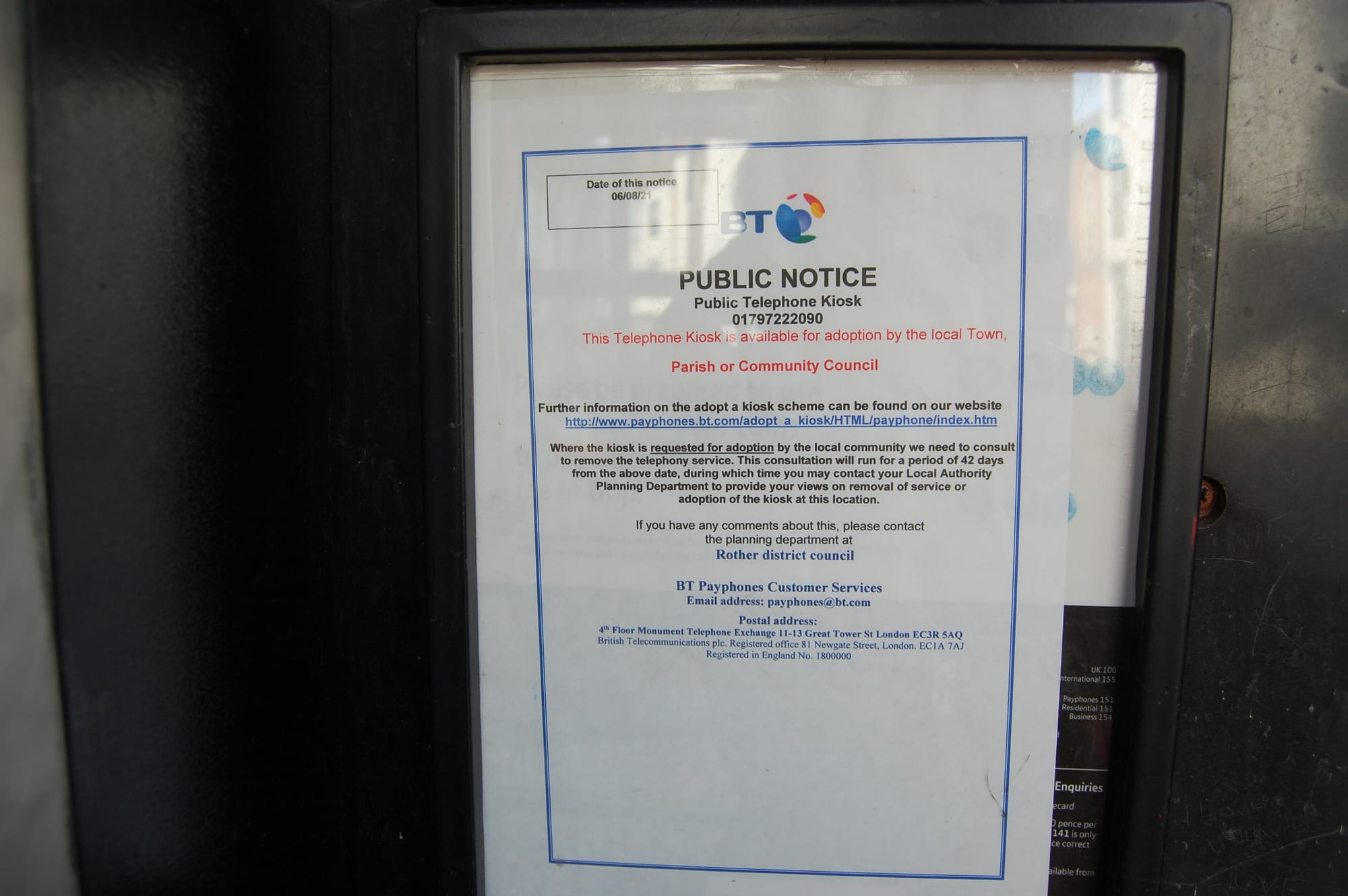 "Please send your objections to Rother Council, you have only three weeks to do this. I am trying to save phones and boxes for the future, I live in Dover but have a great interest in this."