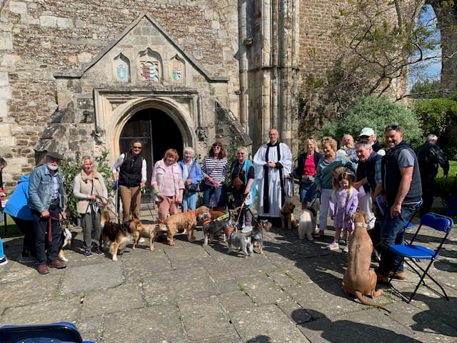 Jonathan Meyer, the rector of Winchelsea Church, had a plan – and it involved tripe. Small bits of tripe, all hidden in a cassock pocket to keep his congregation happy as around thirty dogs, two guinea pigs, and a parrot called Bella joined their owners for the first ever pet service at St Thomas’ on Sunday, May 21.