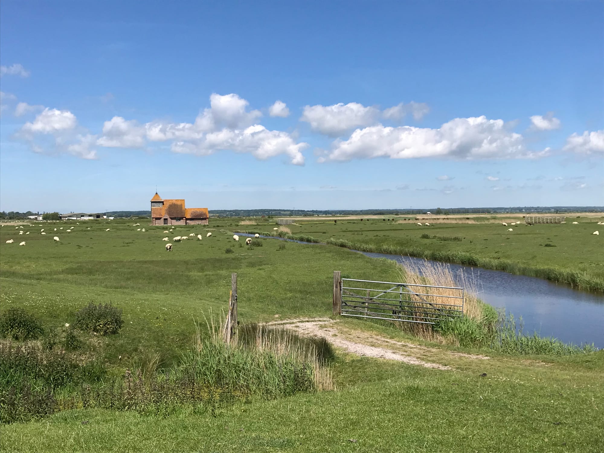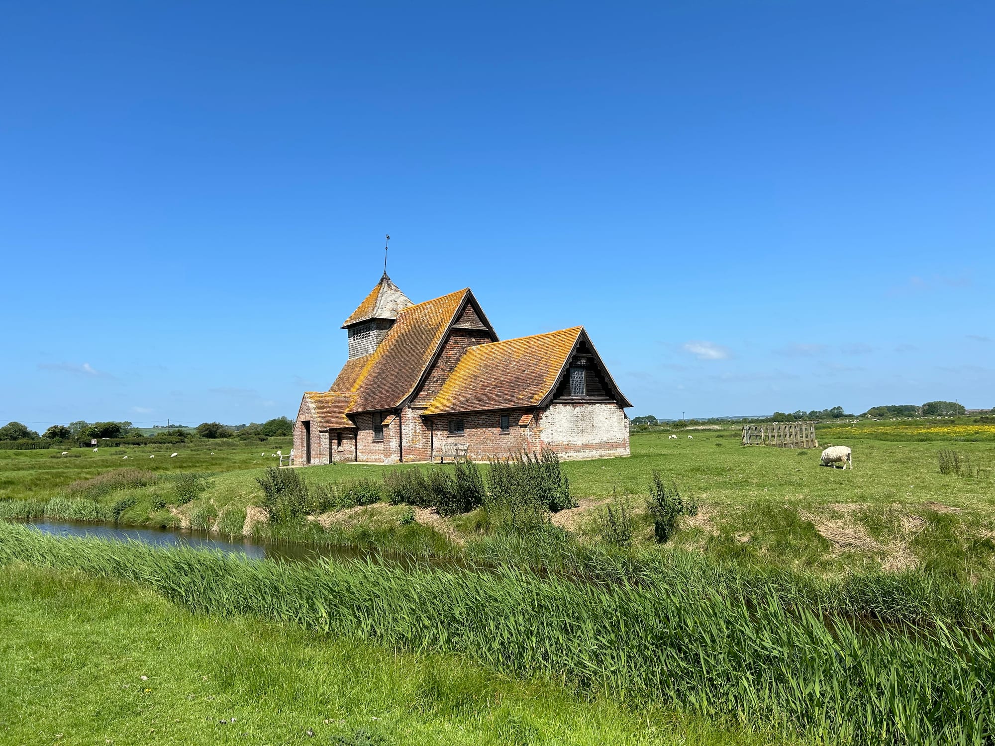 Romney Marsh can be a bleak and lonely but beautiful place. Typical of that is the church of St Thomas Becket, sitting alone surrounded by fields and streams, at Fairfield about three miles from Brookland. For many it's a sight as iconic as St Mary's Rye. All alone on the Marsh, something to look out for on the rail journey to Ashford.