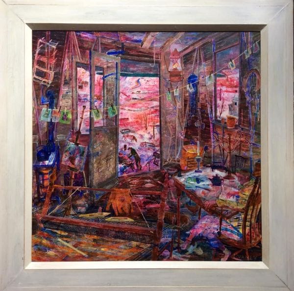Born 1946, Pett, near Hastings. The paintings are predominantly narrative and autobiographical. Lorna has worked as a conservator, gilder, lacquer-worker, teacher and painter.