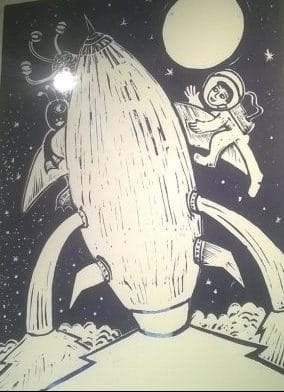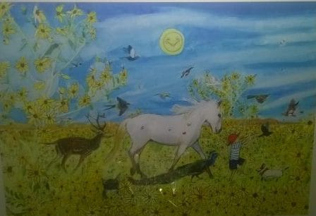 Ed Ball also tells stories for children but they are lino etchings and very different but affecting. Something unexpected were the hand crafted/painted door wedges from Sri Lanka.