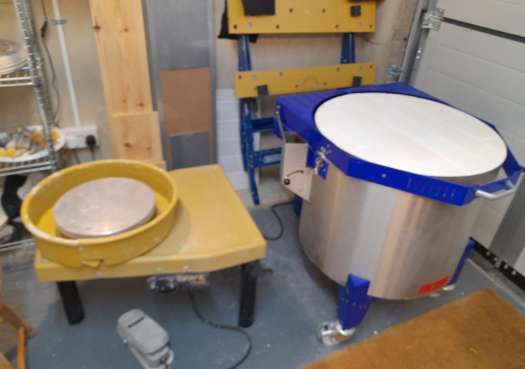 Lawrence bought the necessary equipment: a potter's wheel, an amazing kiln, hand tools and glaze. He put up useful shelving to display his art and for drying the different glazes. When having an idea of the colour wanted, often a surprising pattern emerges on the pots which can be exciting, or perhaps not, and has to be redone.
