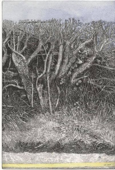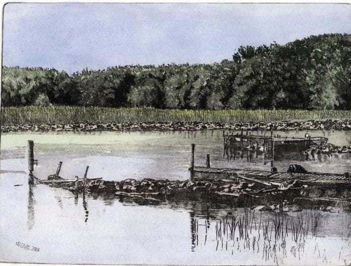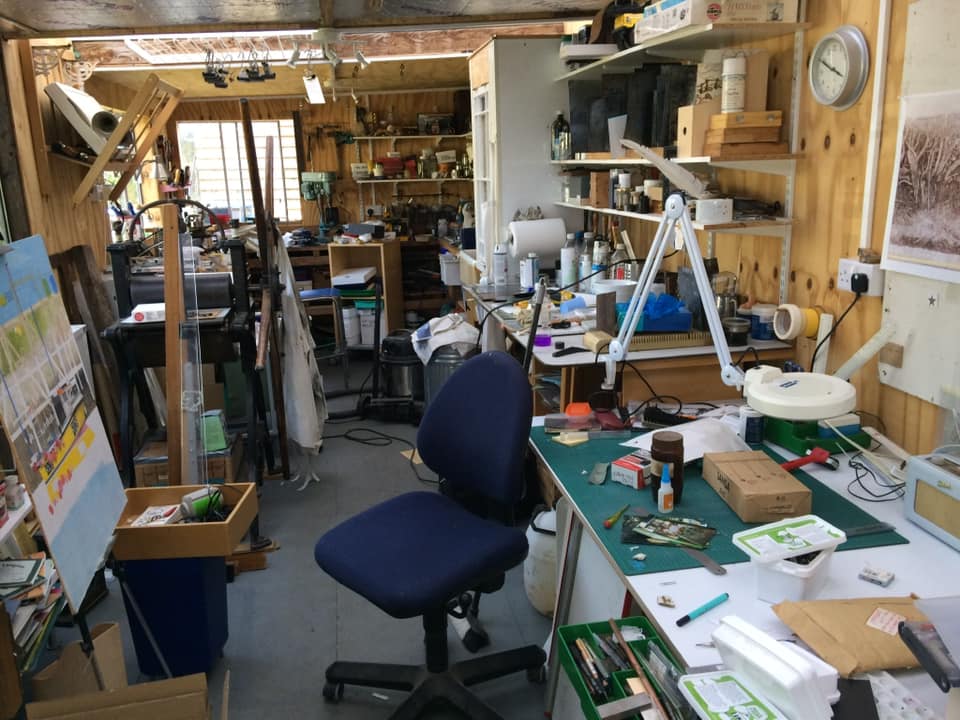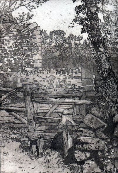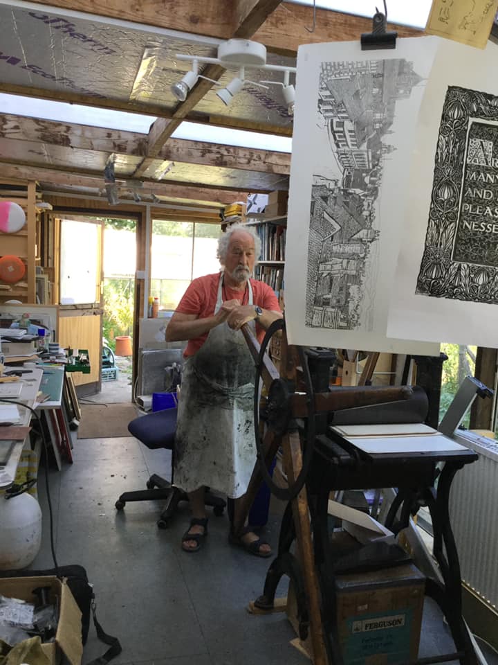 Mike specialises in etchings using hard and soft grounds, aquatint as well as multiple plate lino-cuts. A career of 40 years as an architect influence the level of detailed drawing he achieves in his work.