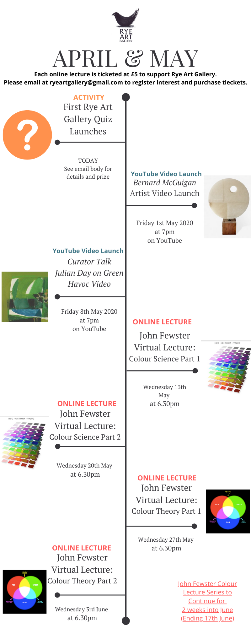 Starting on Wednesday May 13 and running weekly until Wednesday June 17 we have a series of six Colour Lectures from gallery artist John Fewster for those interested in the visual arts.