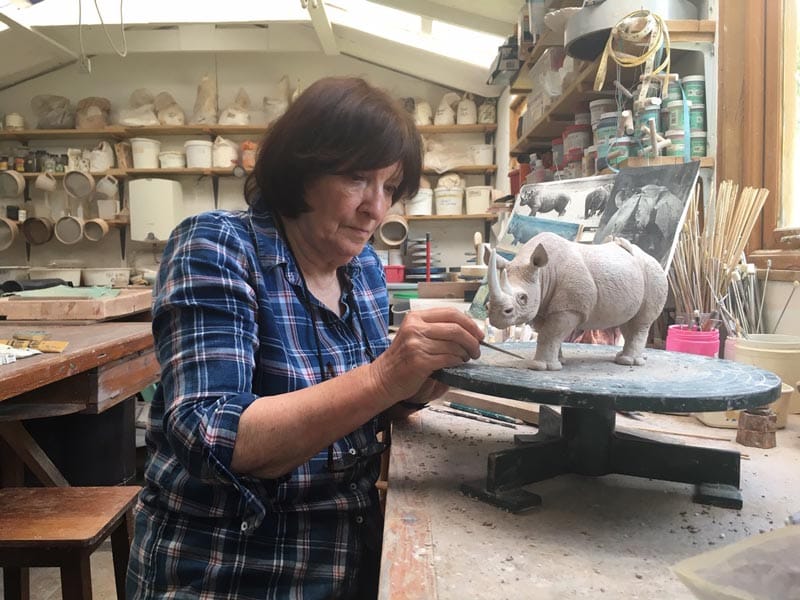 Celia Allen’s sculptures capture the essence and spirit of animals. She works from animals seen in the countryside around her home and is also particularly inspired by the plight of endangered species such as the rhinoceros and the polar bear.