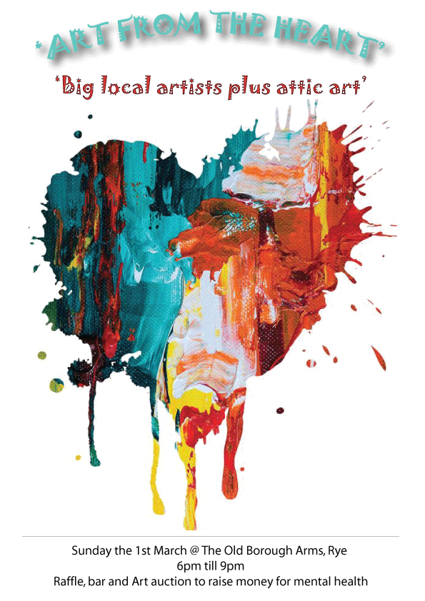 This coming Sunday, March 1, at Old Borough Arms there will be an auction of local artists' work, commencing at 6pm, and a raffle to help support an ex-Rye resident Kerry Sherwood who is facing the possibility of homelessness.