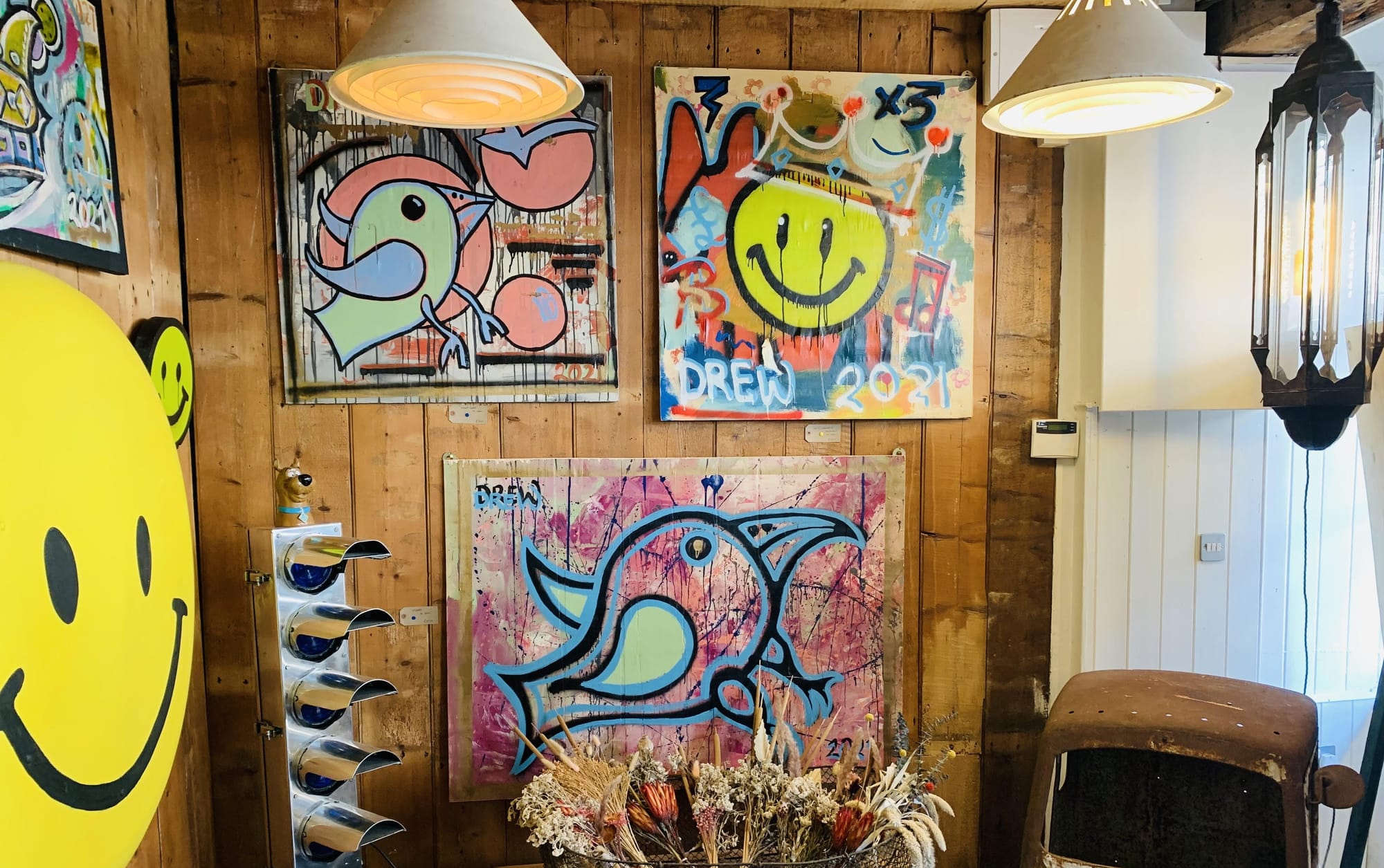 Enjoying life in Rye, being busy with the shop as well as the Playhouse (it is managed by Camber Cottages), Justin could not say no to a new opportunity. He was already displaying the unique and interesting paintings of successful artist Drew. The two agreed that Justin would become the agent for Drew, who usually paints on very large canvases. The art, quirky and full of colour, is now filling the walls of the shop, making a powerful impression as one walks in. If you would like any further information about Ashbees 100 go to the website or phone 07971 989 178.