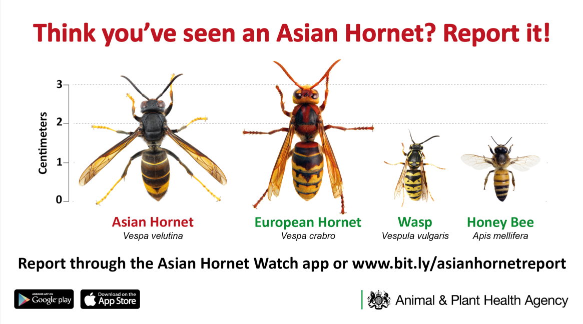 Asian hornets, which can become aggressive when disturbed, have yellow legs and local people are being urged to report any other sightings. A spokesperson for the British Beekeepers’ Association says the insects pose a big danger to honeybees. “Asian hornets are an incredibly destructive invasive species that specialise in preying on honey bee hives - one hornet alone can kill up to 50 honey bees per day."