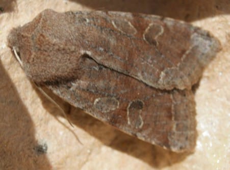 As moths are attracted to light, they fly towards the lamp and go down the funnel in to the dark bucket, which contains egg boxes. The moths like hiding in the bumps and dips. We have caught ten different species of moths so far, which we identify using a book that I was given for my birthday. The first time we found seven of the same species, Hebrew Character. Since then, as we get further into spring, we are getting more of a diverse range of moth species, including identifying one that more typically should only be appearing later in summer. However, for that particular moth it was after the storms, so perhaps something could have made it come earlier?