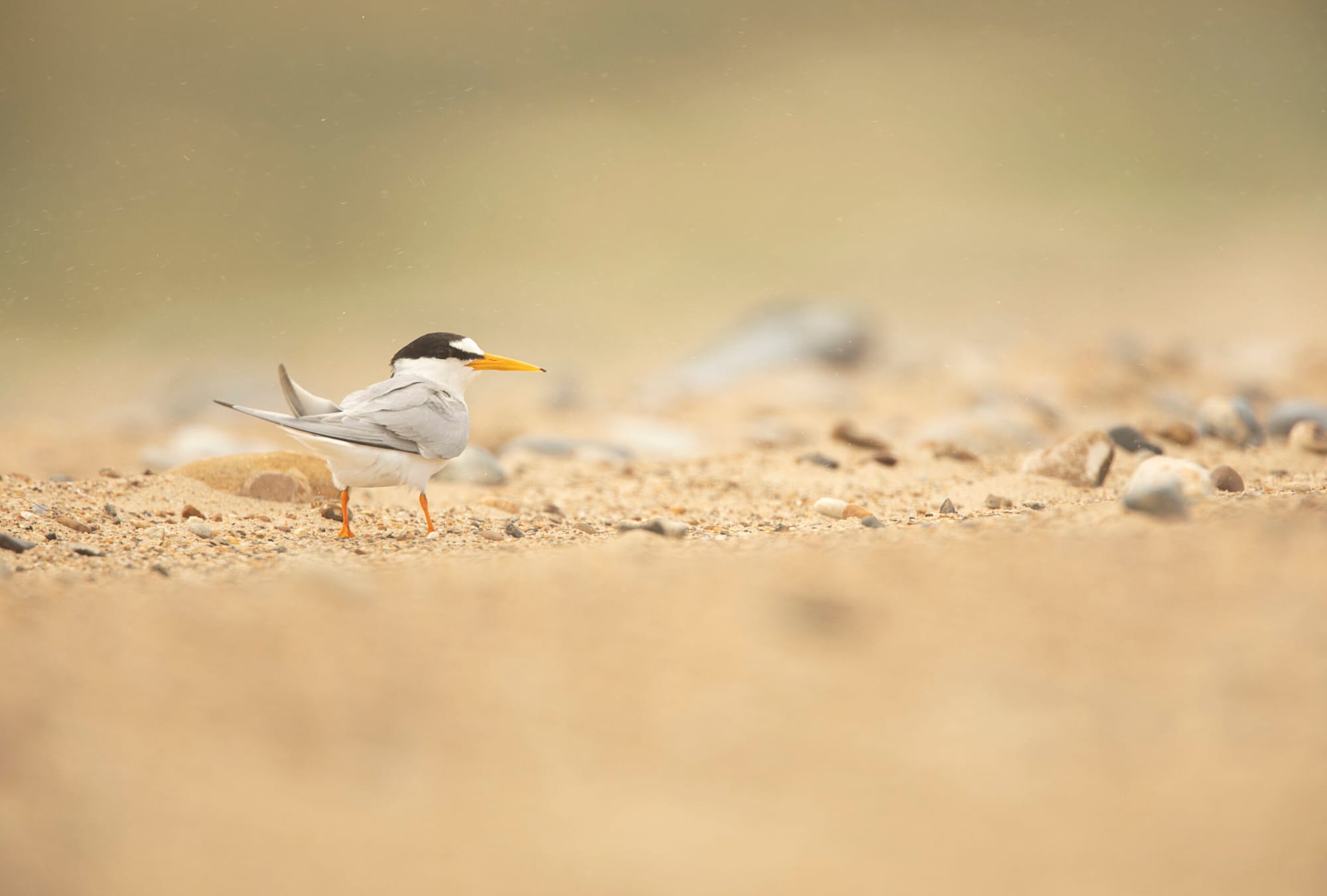 As their name suggests, Little Terns are the UK’s smallest species of tern, weighing in at just 40 to 60g – that’s about the same as a tennis ball. Instead of building their nests in trees or bushes like many birds, Little Terns nest on beaches and lay their perfectly camouflaged eggs directly on the sand or shingle. While blending in with the beach helps hide the eggs and chicks from predators, it also means they’re vulnerable to being trampled by unsuspecting beachgoers. The island-creation at RSPB Dungeness therefore may prove important to Little Terns nesting in this area of Kent, protecting them from both human and predator disturbance through both the natural barrier of water surrounding the island and also via predator exclusion fences that have been installed around the islands, discouraging mammals that may predate on the eggs from accessing them.