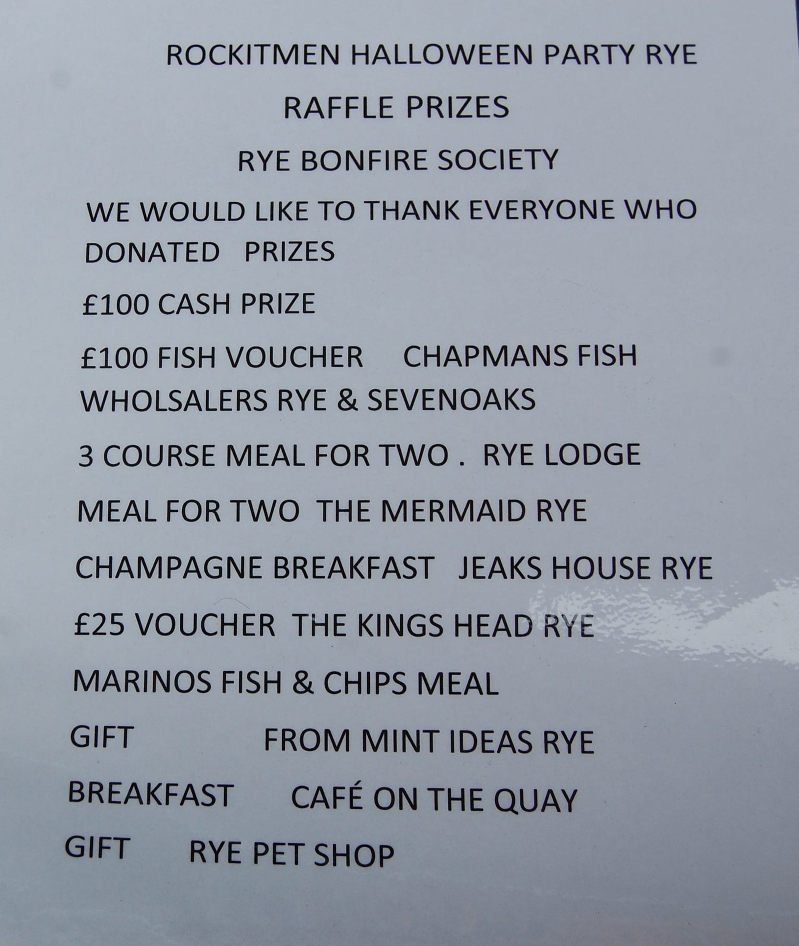 Tim Phillips of the Rockitmen and friends were outside Adams Stationers on Saturday morning, October 14, selling raffle tickets in support of the Rye Bonfire Society. Tim Phillips said: "We would like to thank everyone who has donated prizes: Chapman's Fish, Rye Lodge,The Mermaid, Jeakes House, the King's Head, Marino's, the Rye Pet Shop, Cafe on the Quay and Mint Ideas.