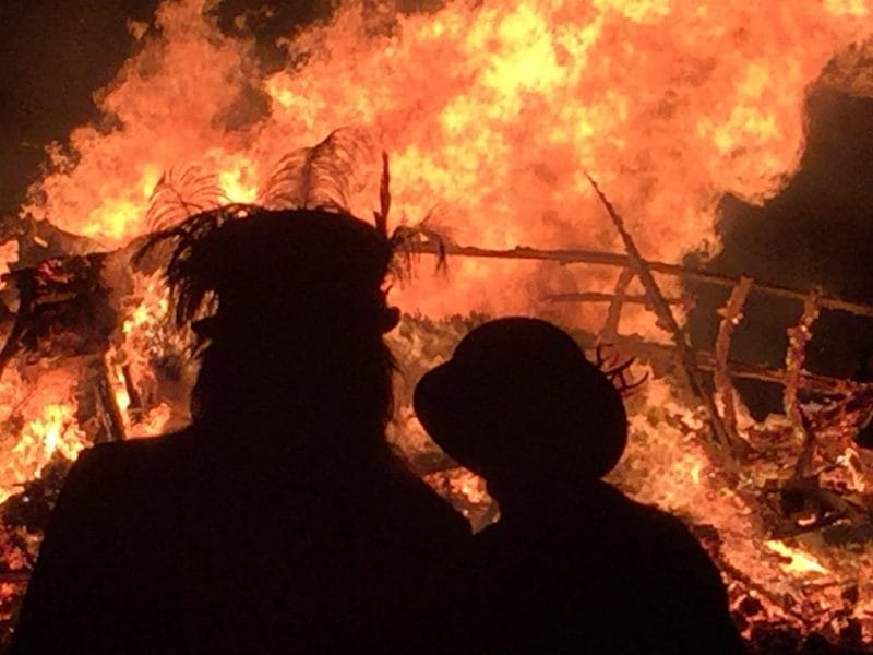 The parade followed the usual pattern – flaming torches, loud drumming, occasional fire crackers, painted faces and each society in its own distinctive dress. It is certainly possible to see how, many years ago in less organised times, the ritual could descend into brawls and settling of old scores. No sign of that now, however, just fun, excitement and a lot – an awful lot – of noise!