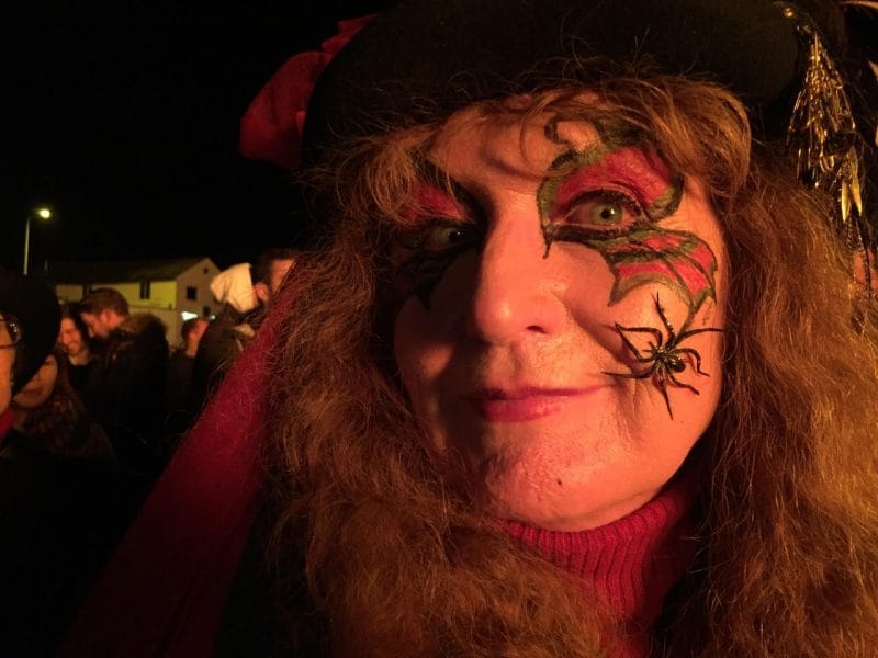 After circling the town Caroline Snowden – who had won the honour at auction – aka Rye Fawkes, was chaired down to the Salts to put a match – actually a flaming torch – under the nether regions of Mr Kim and Mr Trump and the 20ft high bonfire was lit.