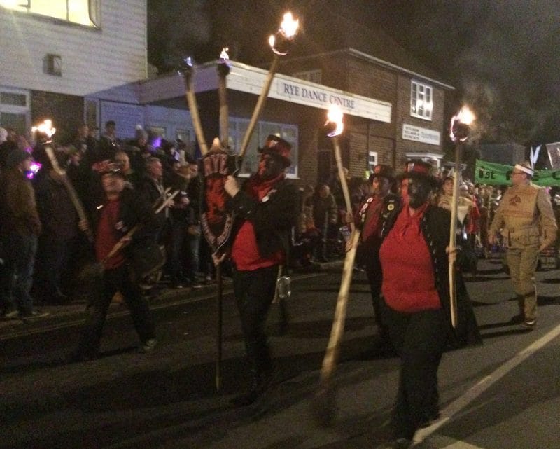 Bonfire Societies from all round East Sussex joined in and the streets were packed with both residents and visitors - all shepherded and controlled with good-humoured firmness by the patient and hard-working marshals. At the time of writing, estimates of the numbers of spectators were not given – although the figure of 10,000 has been mentioned. Certainly Southern Railway, having learned the lesson following their lack of service to the Lewes bonfire and subsequent complaints, enlarged the Marshlink service from its usual two carriages to four.
