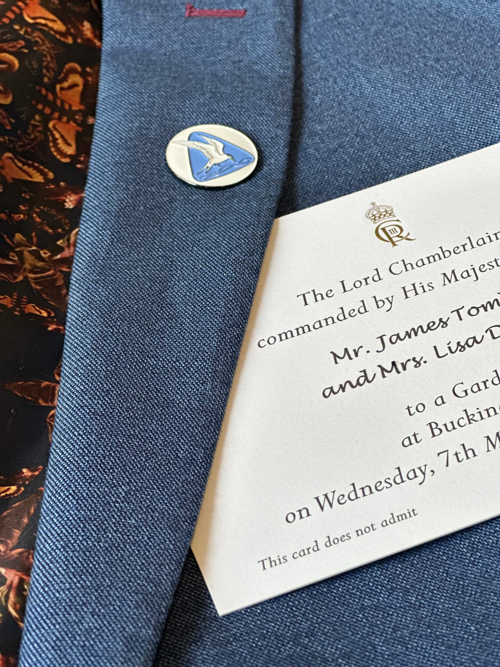 James Tomlinson, our wonderful bird artist and wearer of many hats and master of many skills, also had the opportunity to go to Buckingham Palace. His day did not start off in a calm, relaxed, laid-back sort of start.