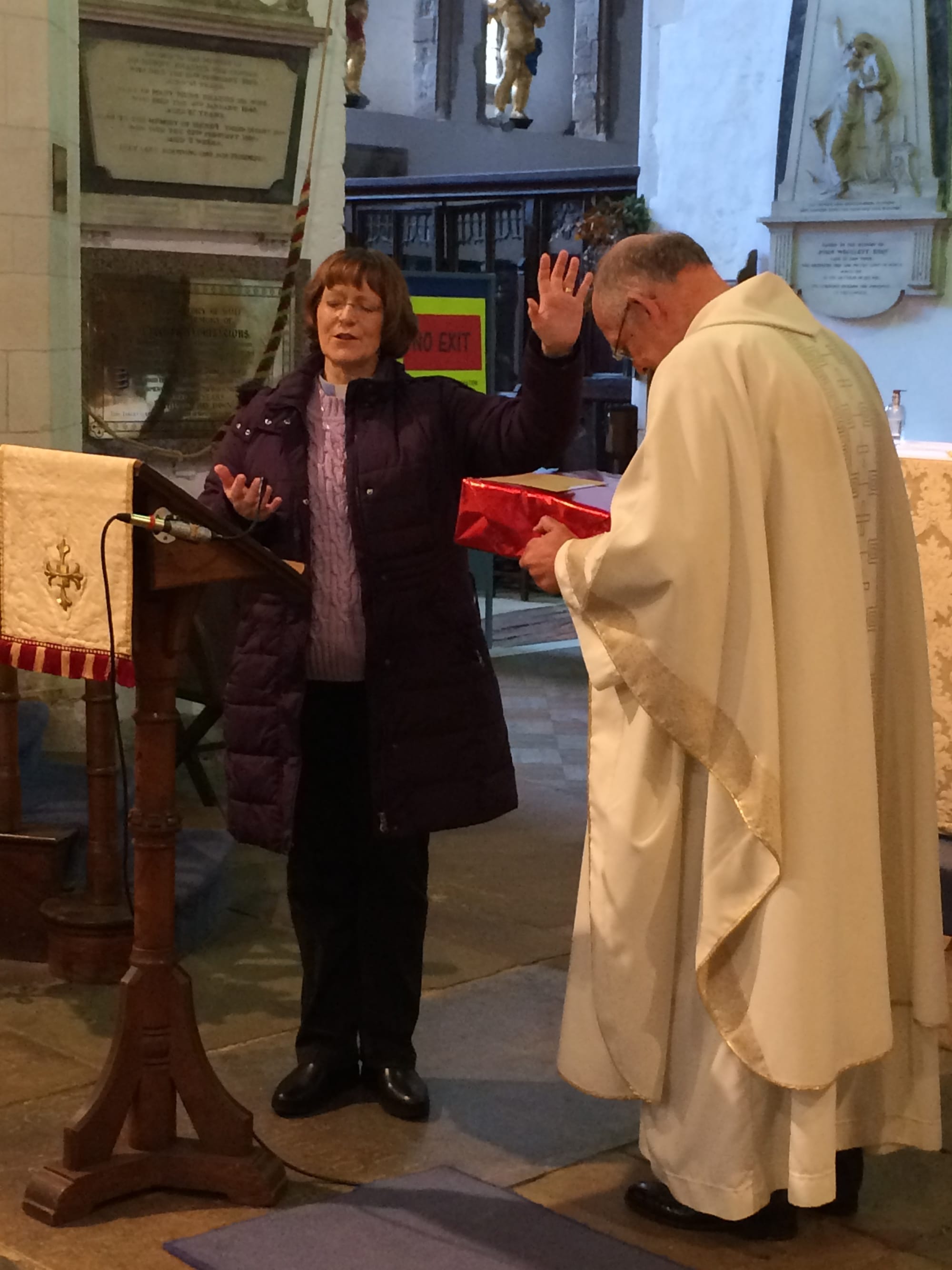 She thanked him for his hospitality in the rectory and presented him with a supply of coffee. She then prayed with him and asked God’s blessing on the next stage of his life in retirement and with his new wife, and then David thanked everyone for the gifts, before speaking about the challenges of being rector of Rye which he has enjoyed, saying that he is not moving far and will be seen around in Rye, although he promises he will not interfere.