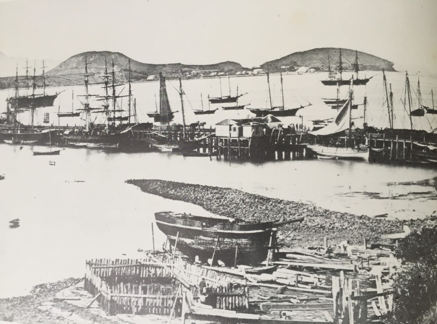 It seems likely that John identified an opportunity to have his own trading business and make his fortune in New Zealand. At this time, New Zealand was a young, fast-growing colony. Ships were the main form of transport for people and goods as any roads were no more that dirt tracks. The photo below is of Auckland harbour in the early 1860s, busy with sailing vessels at anchor and shipbuilding in the foreground.