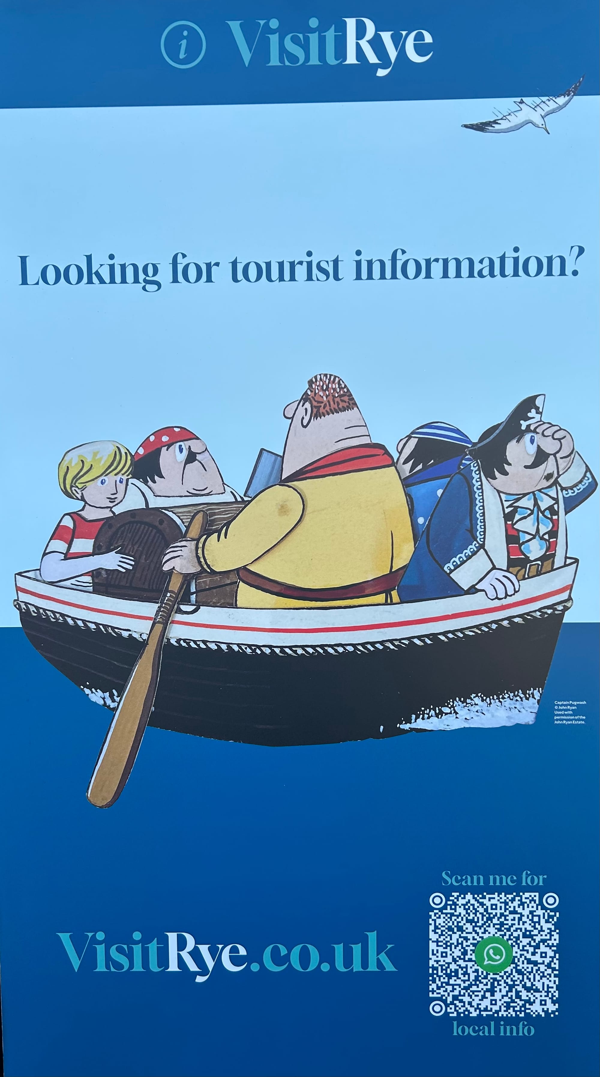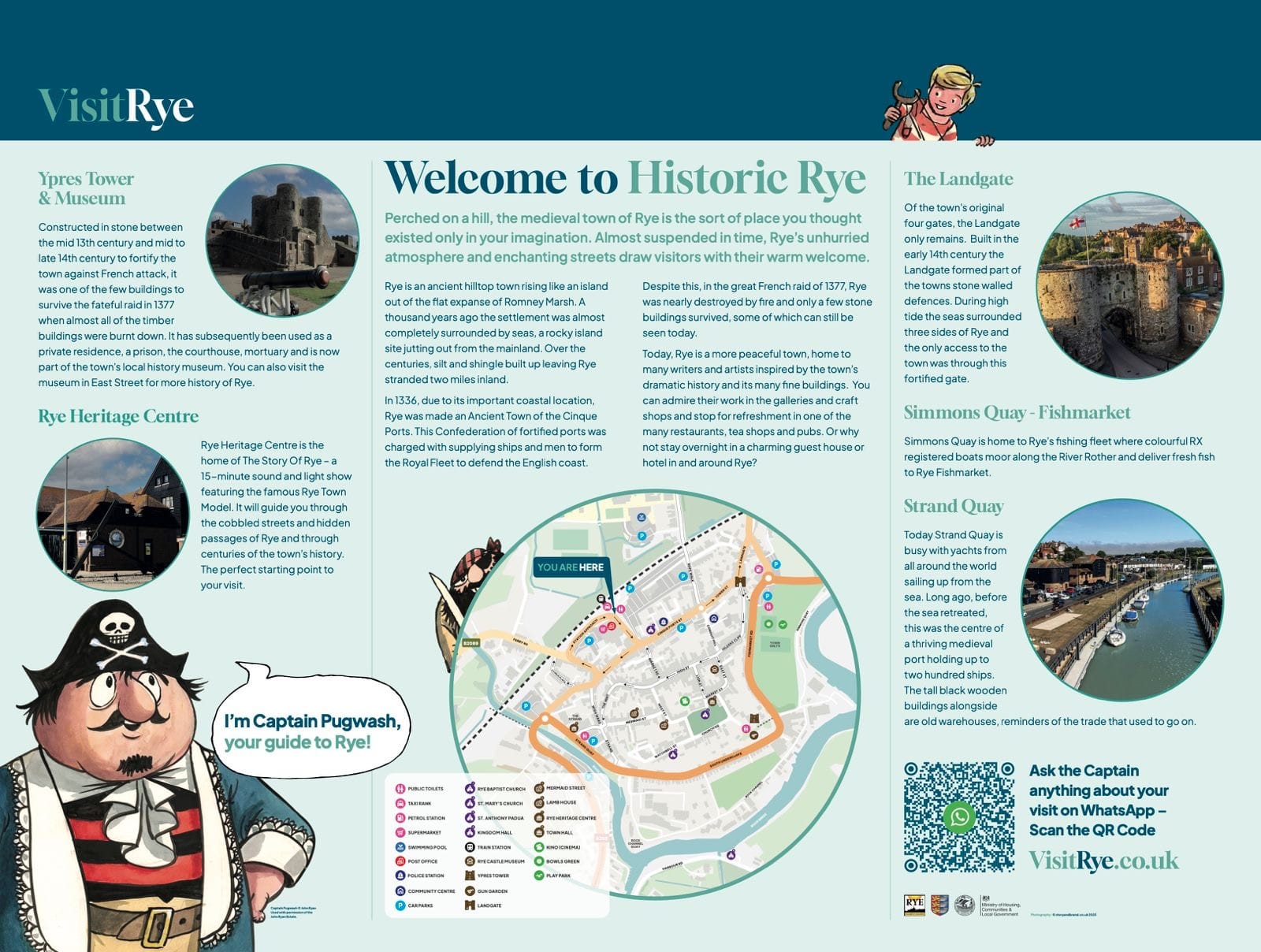 The new service was launched on Friday 21 November at the revamped tourist signs across from Rye railway station. The newly designed boards give visitors a map of the town and information about places to visit, along with a QR code which opens up a chat on WhatsApp with Captain Pugwash.