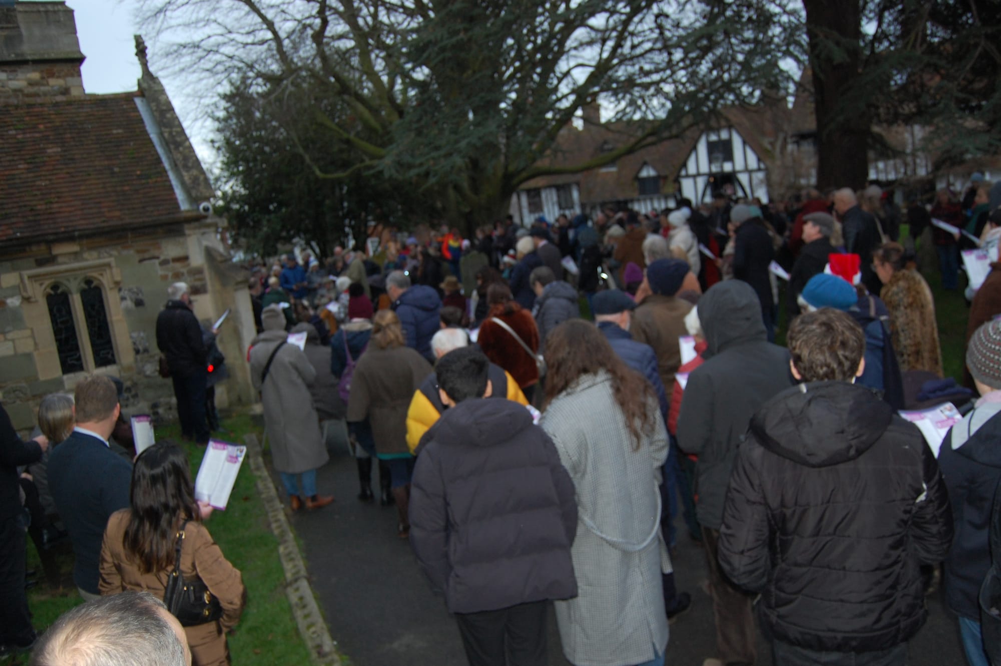 Upwards of 100 people gathered around the south door in St Mary's churchyard on Christmas Eve. They were there to sing carols or to hear them sung, for not all those present appeared to be raising their voice. It was a time for goodwill and for many to welcome Paul White, the new rector, who led the singing.