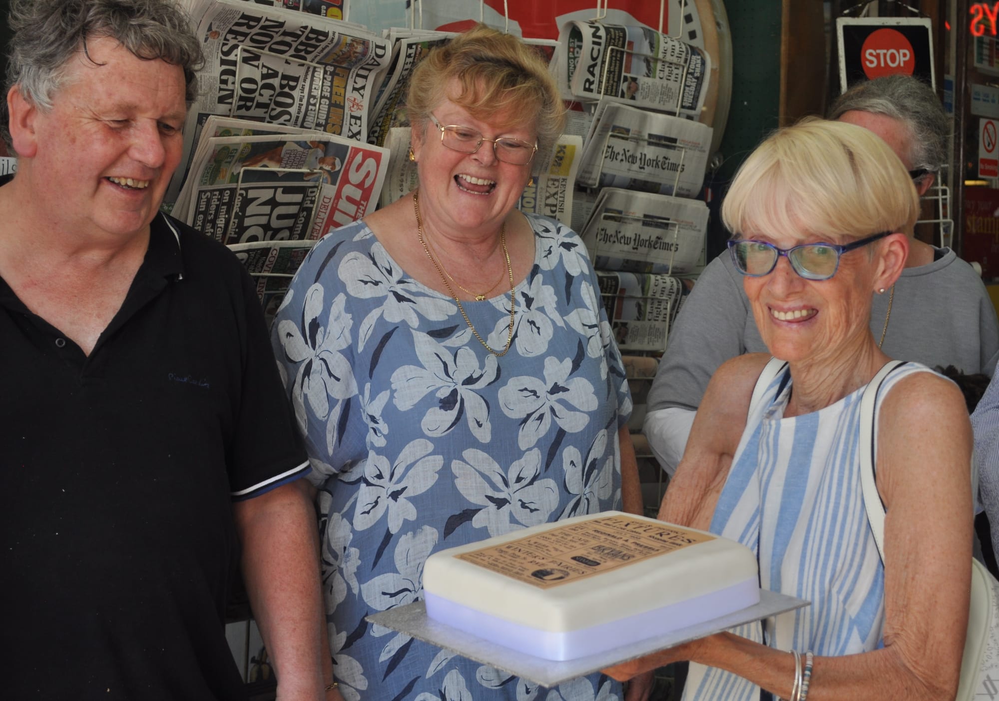 Ian, Alex and James were thrilled with the surprise celebrations: all they knew was that Rye News had asked them to be at the shop at 3pm; little did they know what it would unfold, and they loved it. After the speeches and cry everyone tucked into the cake and Prosecco.