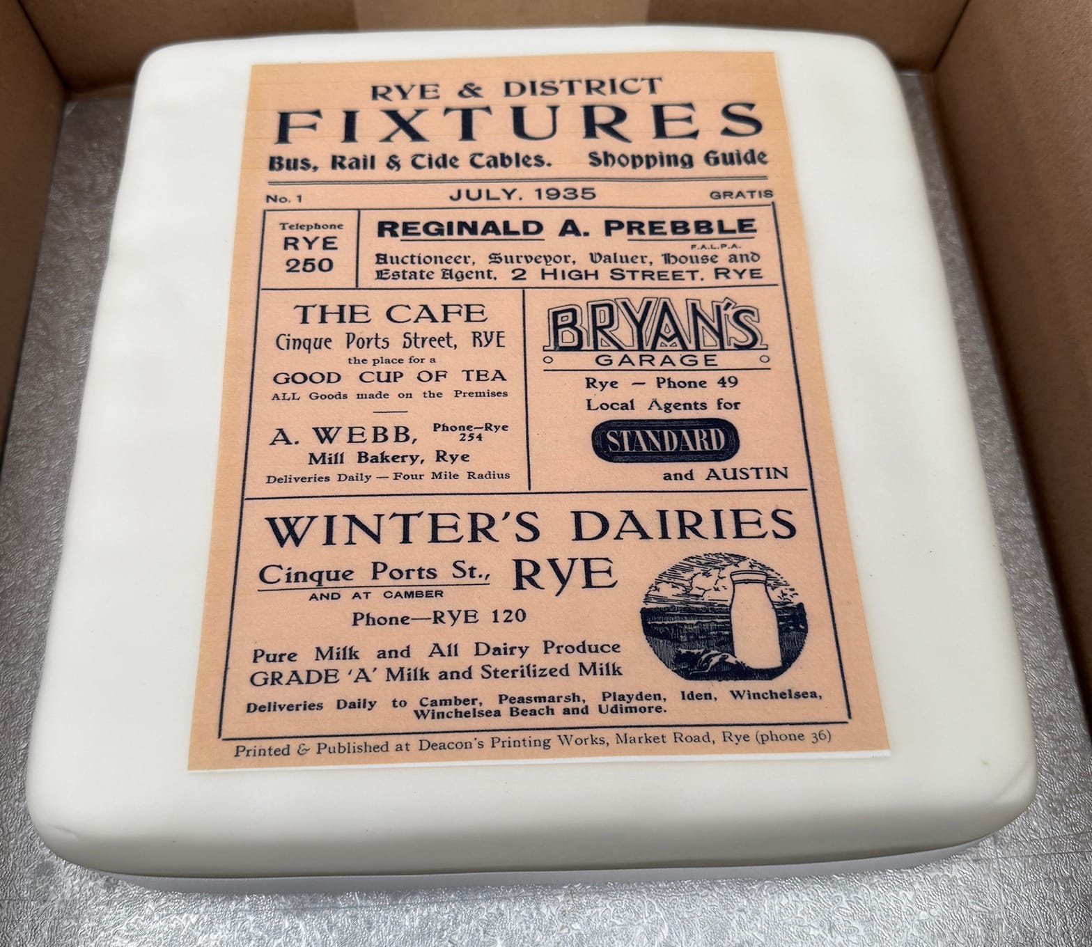 On Tuesday, July 1 Rye News organised a celebratory cake to mark the occasion. Jempson’s kindly baked and iced the cake and Lorna Dowling from Sweet Tooth Cakes provided the incredible edible topper which was a replica of the first edition’s front cover. Thank you to these two businesses for their support in celebrating the one thousand edition milestone.