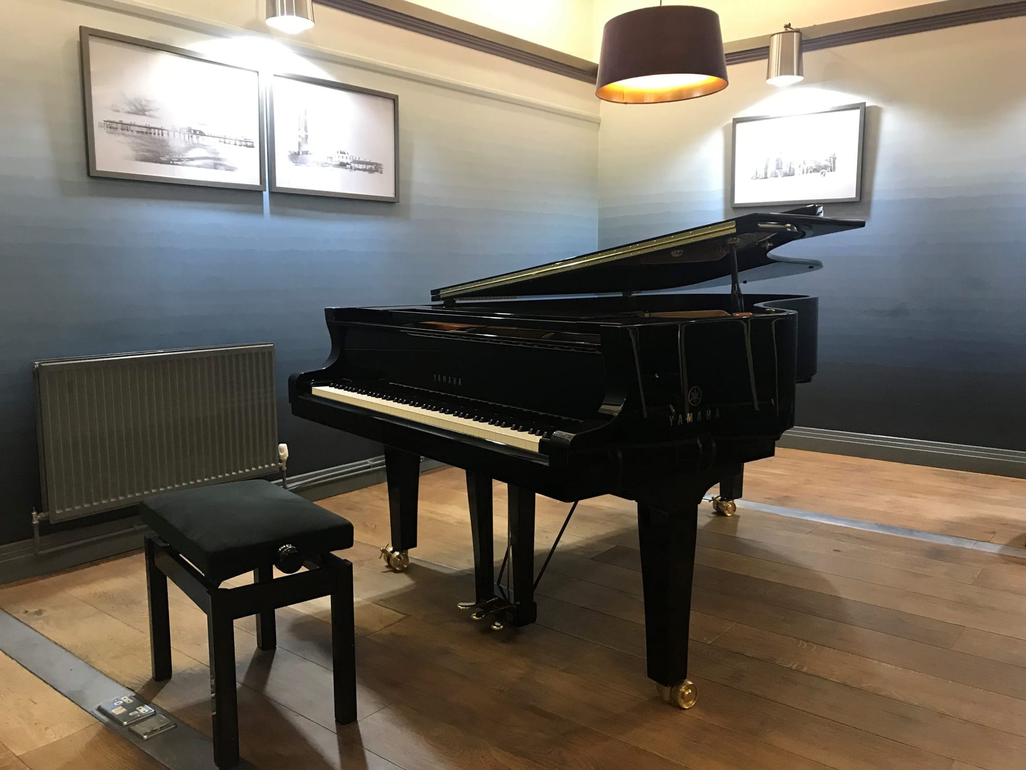 For the anniversary celebration the office also underwent a temporary internal transformation, the smart desks and equipment were removed, replaced with rows of chairs and taking pride of place, a shiny black Yamaha grand piano. The office was now a concert venue and with all seats taken we eagerly awaited a very special guest, Martyn’s daughter.