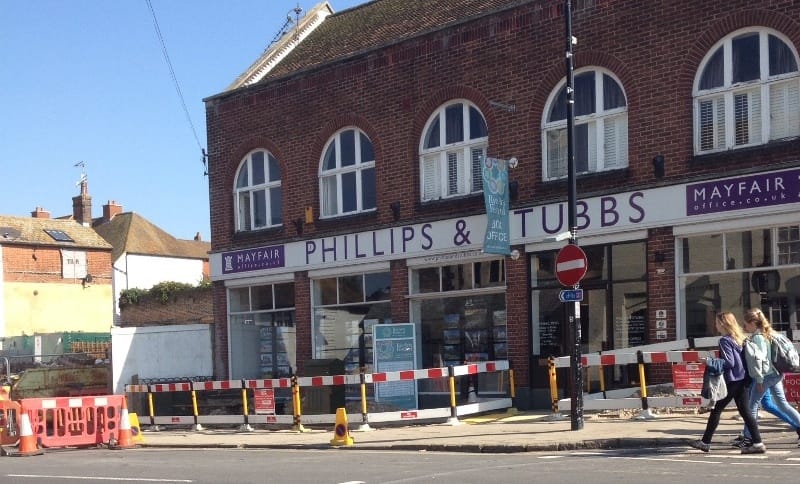 Phillips and Stubbs have always moved with the times and over the 30 year period have adapted their premises along the way. The facia in the 2014 photograph (complete with road works) was brought right up to date when it was repainted in battleship grey (very on trend at the time) but this year French green is the colour of choice for their new facia and livery. Their prominently positioned offices stand out from the crowd in their resplendent new colour which didn’t just happen by chance. French green was finally chosen after a great deal of research, colour swatches and consultation with the planners, conservation society and professional bodies.