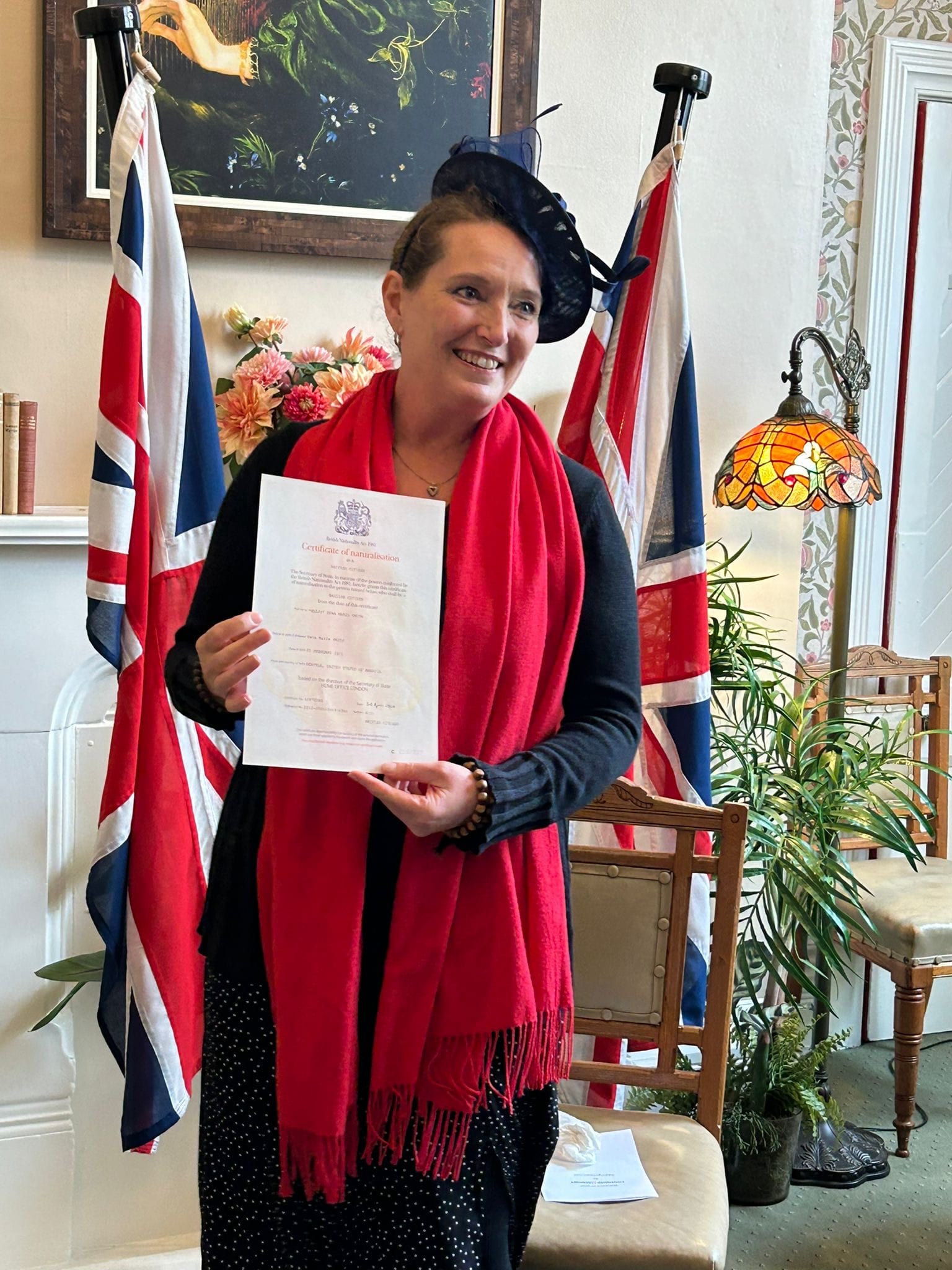 “Let’s all give a rousing cheer to our newest true blue UK citizen, Dena Smith Ellis!