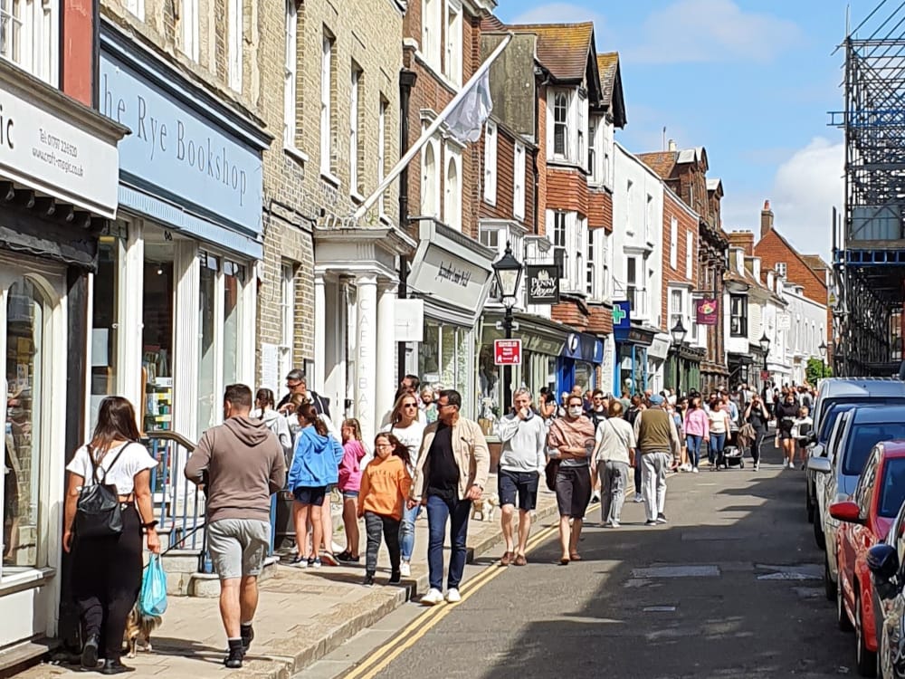 Even with the change of weather, it is possible to see large numbers of visitors to Rye not adhering to social distancing.