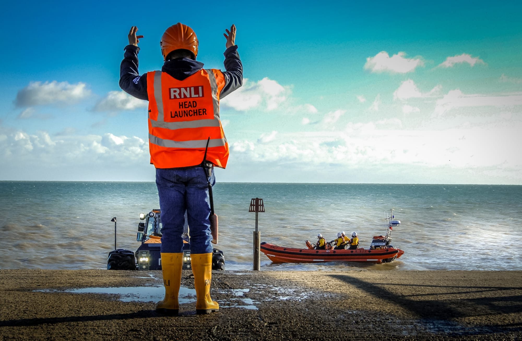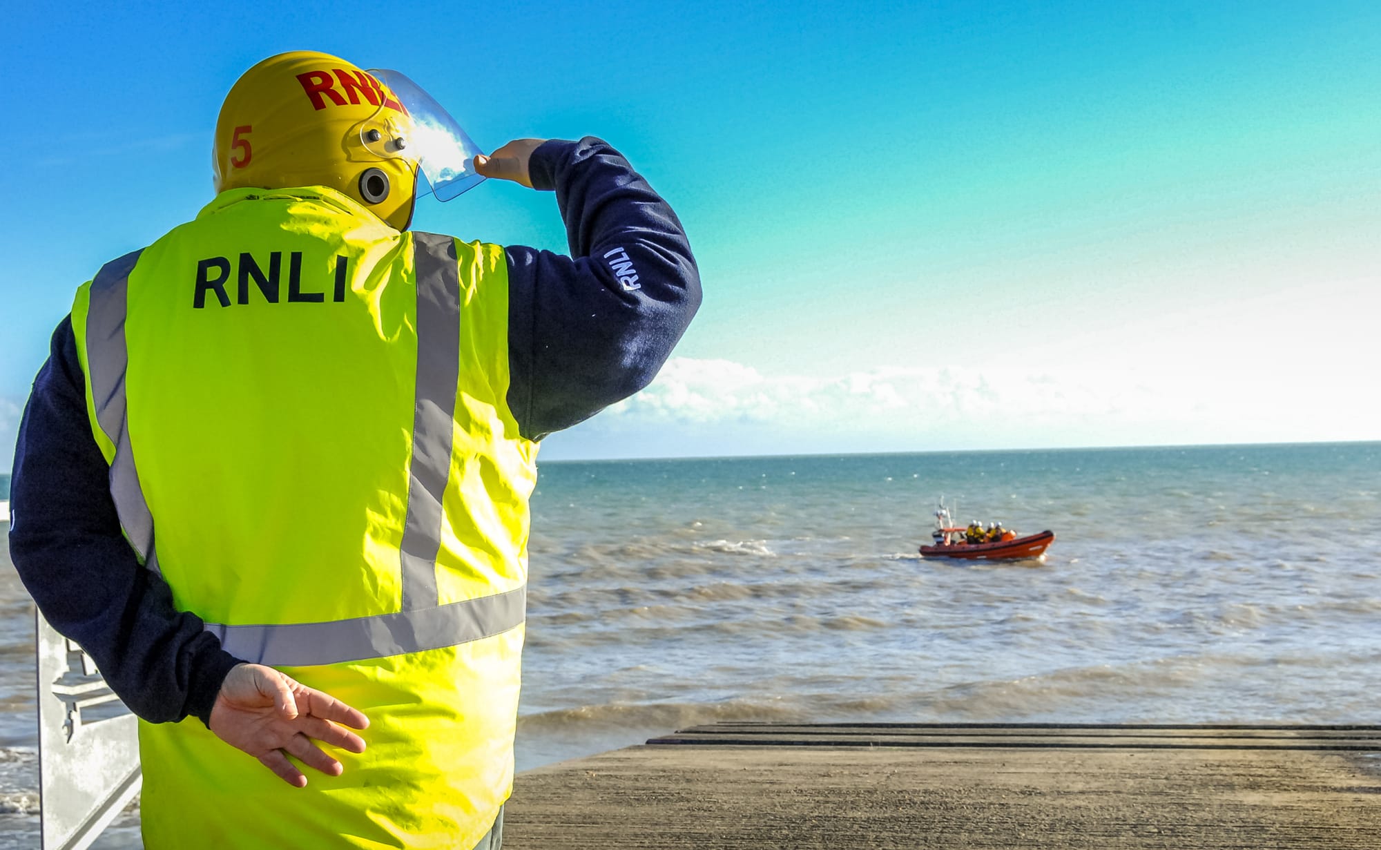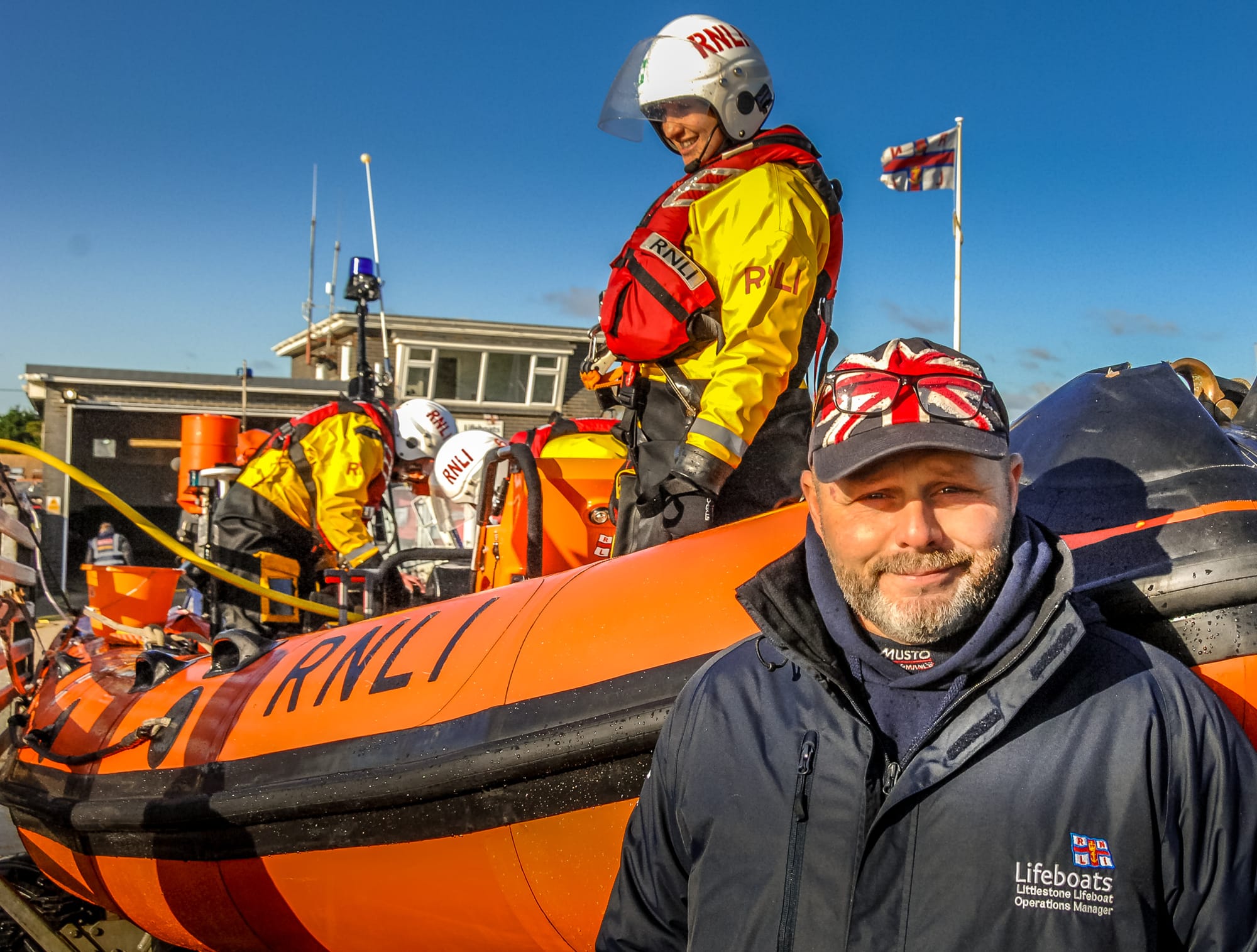 Members of the Littlestone crew, all volunteers from the local community, paid homage to ‘Fred Clarke’ with a lively and impressive display on the waterfront by the station, alongside the replacement, ‘Jean McIvor’. Both vessels were named after generous supporters of the RNLI whose donations have helped finance operations.