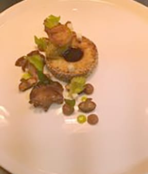 And on the side? "A pomme dauphine made with traditional choux pastry and mashed potato, but to reduce waste I swapped the mash with a salt baked celeriac trim. With a hot apple centre topped with a cheese espuma and fresh truffle."