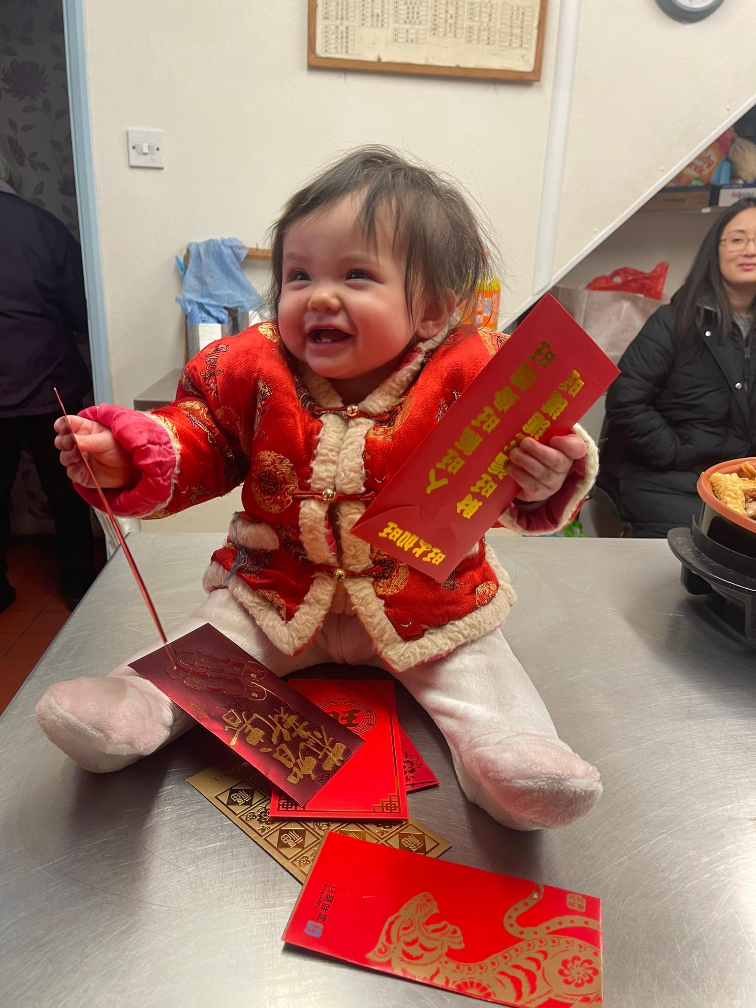 The children received Lai Si, a red envelope, in which gifts are presented at social and family gatherings, such as weddings and the Chinese New Year. The red colour of the envelope symbolises good luck and wards off evil spirits for the recipient.