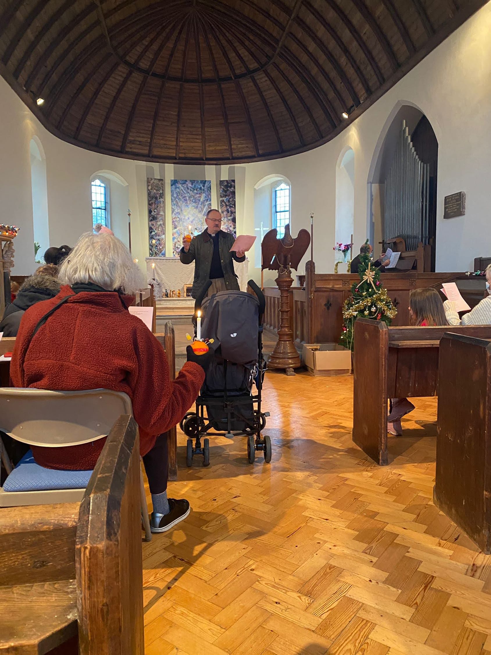 The new rector of Rye, Revd. Paul White, came to the Church of the Holy Spirit for the first time and commented afterwards: "It was an absolute delight to take my first service at the Church of the Holy Spirit in Rye Harbour on Sunday 19th December. It was a Christingle service, in which we remember Jesus coming as the light of the world at Christmas, and it was brilliantly planned by Kt and Martin Bruce, with Martin playing the hymns.